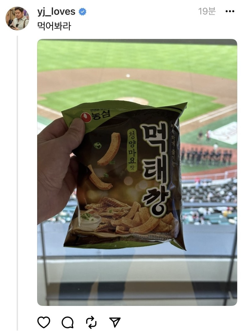식품업계 브랜드 역시 스레드에 하나둘씩 참여하고 있어요. 정용진 신세계 부회장은 평소에도 SNS에서 팔로워들과 자주 소통하는 것으로 유명한데요. 발 빠르게 스레드 계정을 만들고, SSG 랜더스의 홈 구장인 인천 문학경기장을 배경으로 먹태깡과 아사히 수퍼드라이 생맥주캔 사진을 올리며 "먹어봐라"라는 글을 올렸어요. 또 "형 오늘 우취(야구경기 우천취소) 될 거 같죠?"라고 물어보는 한 이용자의 글에 "그러게요ㅠㅠ"라고 답글을 달면서 직접적인 소통도 활발히 하고 있어요.