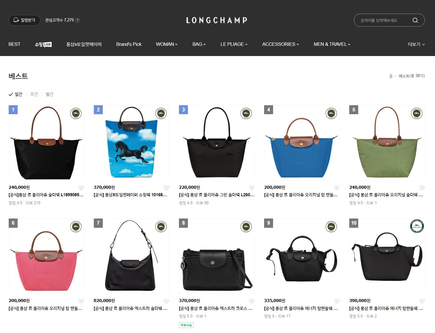 롱샴은 실용적이면서 클래식한 가방 ‘르 플리아쥬’로 유명해요. 학생부터 주부들까지 매일 쉽고 편하게 매기 좋은 가방 브랜드로 잘 알려져 있죠. 롱샴은 전통적이고 클래식한 이미지를 지닌 가방 브랜드라는 인식이 강한데요, 최근 다양한 브랜드와의 협업과 의류 출시로 브랜드 영역을 넓혀가고 있어요.