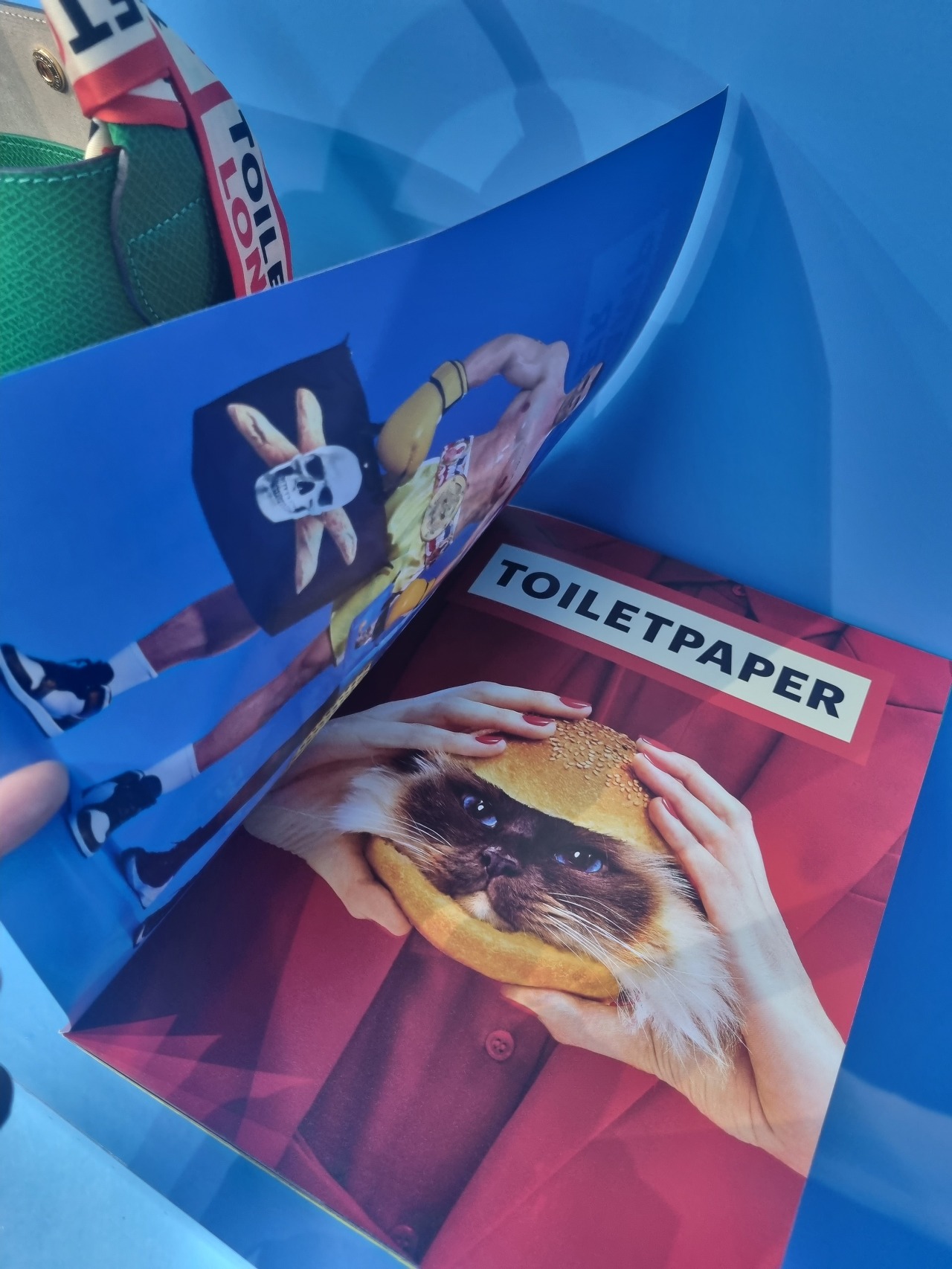 이번에 롯데월드몰에서 선보인 롱샴X토일렛페이퍼의 팝업은 인상적인 디자인으로 큰 인기를 끌고 있어요. 토일렛페이퍼는 아티스트 마우리치오 카텔란(Maurizio Cattelan)과 사진작가 피에르파올로 페라리(Pierpaolo Ferrari)가 공동으로 시작한 아트매거진인데요, 발칙하고 장난스러운 무드가 컨셉이에요. 토일렛페이퍼는 2010년에 시작되었는데 이름에 걸맞게 ‘쉽게 사용되는 화장지’처럼 누구나 쉽게 즐길 수 있고 예술의 경계를 허무는 컨셉을 추구하고 있어요.