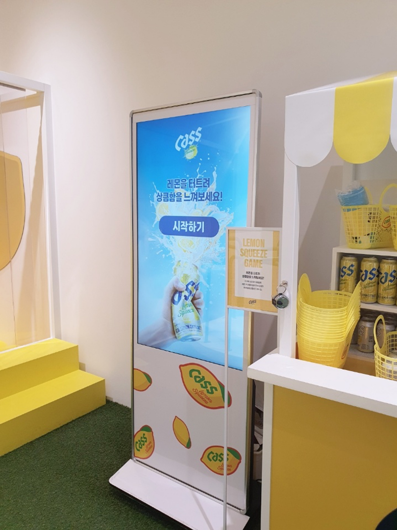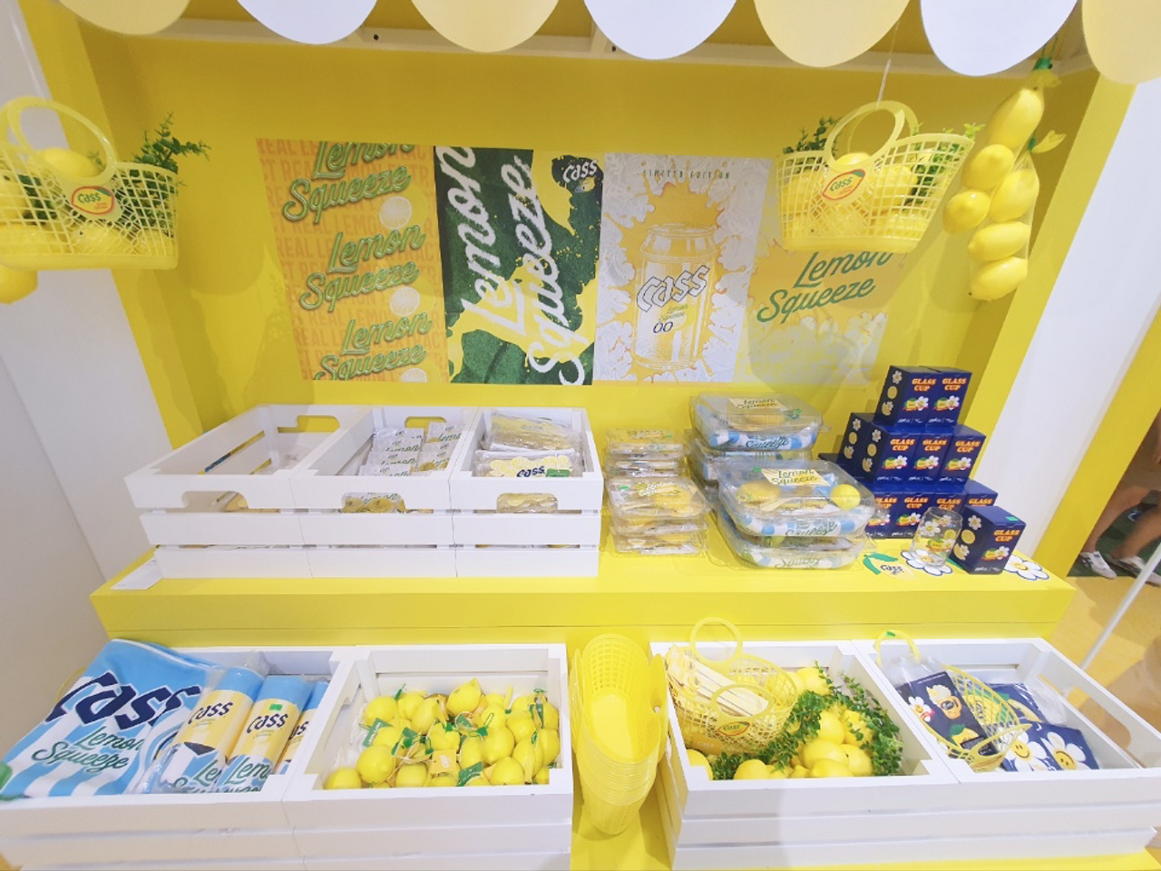 카스의 제조사 오비맥주가 여름을 맞아 한정판으로 카스 레몬 스퀴즈를 출시했어요. 레몬과 맥주의 조합은 상상만 해도 꿀조합인데요. 기대에 부응하듯 카스 레몬 스퀴즈는 출시 2주 만에 100만 캔이 팔릴 정도로 엄청난 인기몰이를 했대요. 게다가 오비맥주에선 즐거운 소비자 경험을 더하기 위해서 이번 레몬 스퀴즈 팝업스토어를 오픈했고요. 팝업스토어 입구부터 상큼한 노란색이 반겨주는데요. 덕분에 멀리서부터 한눈에 알아볼 수 있었어요.