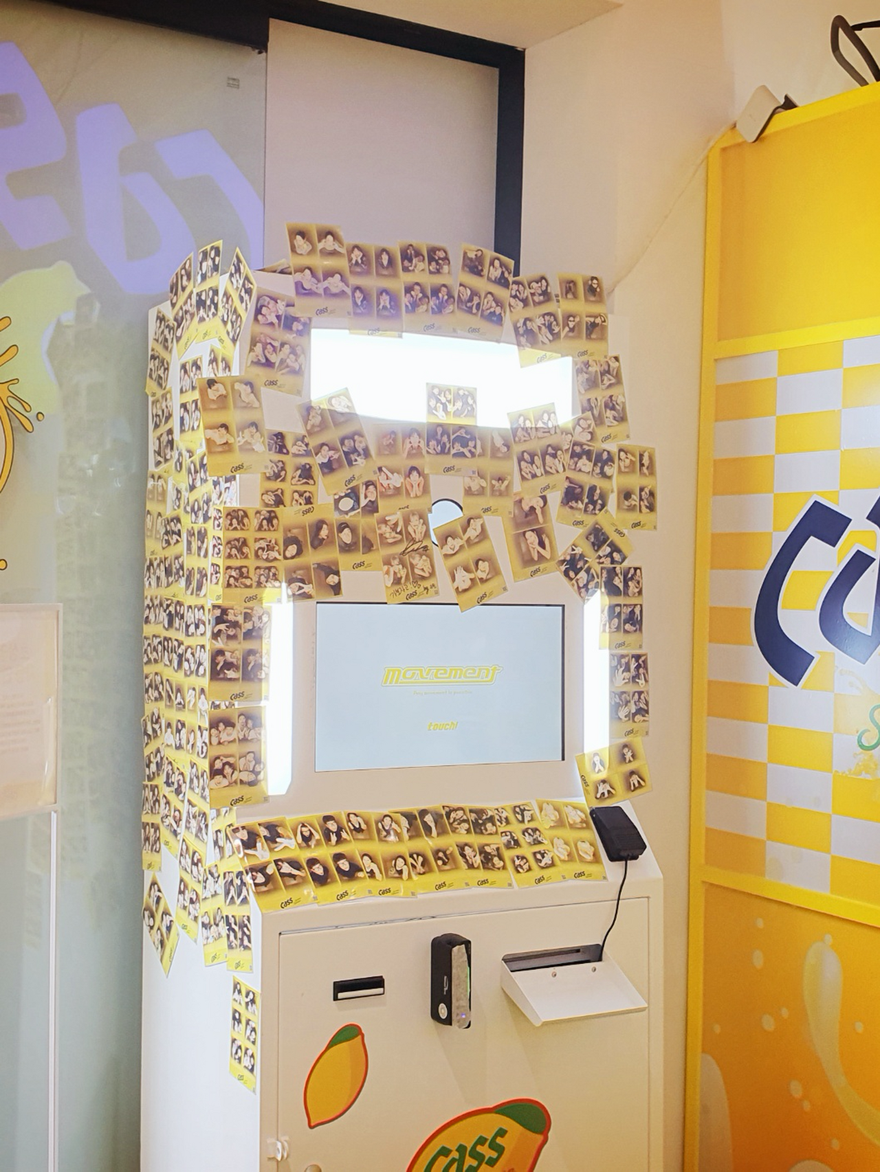 포토부스 앞에 방문자들의 사진이 붙어있는 모습 역시, 카스의 트렌디함을 어필하는 동시에 이번 팝업에 많은 사람들이 다녀갔다는 걸 알 수 있는 요소였어요.