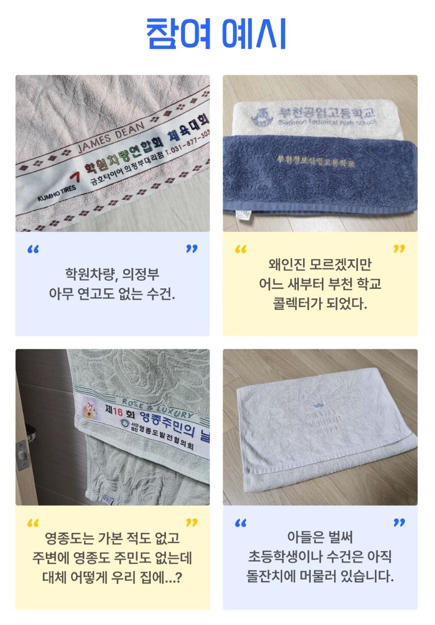 ✔️오래된 추억의 수건부터, 재미있는 이벤트 수건까지 다양한 수건 콘텐츠가 재미를 더했어요.