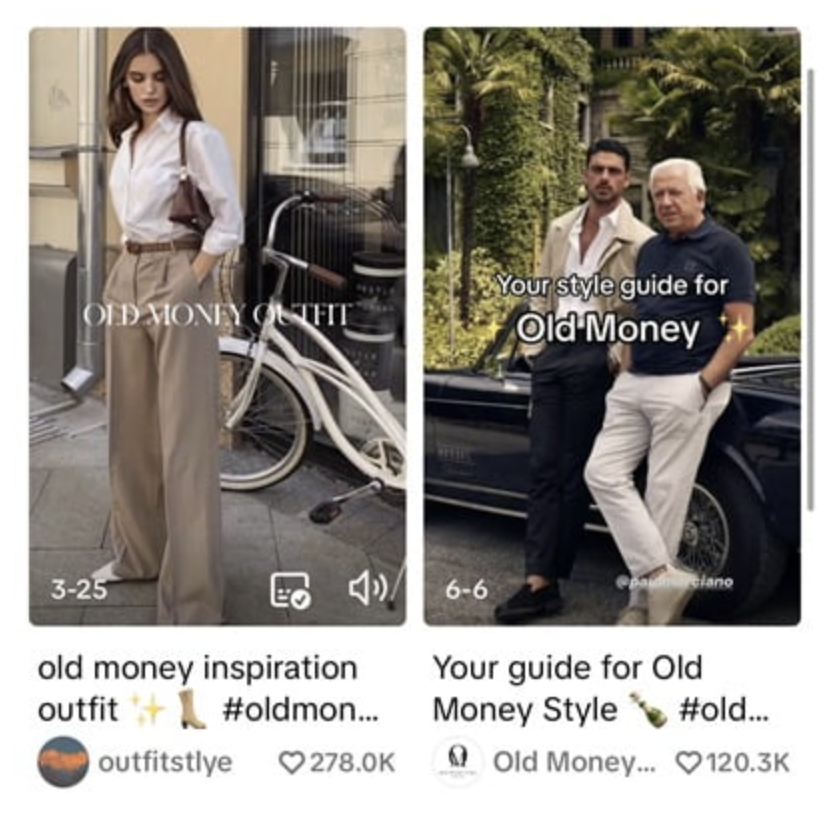 이유는 다양하겠지만, 올드머니패션의 유행 흐름은 뚜렷해보입니다. Z세대들이 올드머니 패션을 따라 하기 시작하면서 숏폼 플랫폼 '틱톡'에는 #oldmoney, #oldmoneyfashion 이라는 해시태그를 단 영상들이 총 26억 회 이상의 조회수를 기록했어요. 또, 영국의 중고거래 플랫폼인 디팝에는 카라셔츠와 트렌치 코트에 대한 검색 횟수가 각각 70% 증가했다고 합니다.