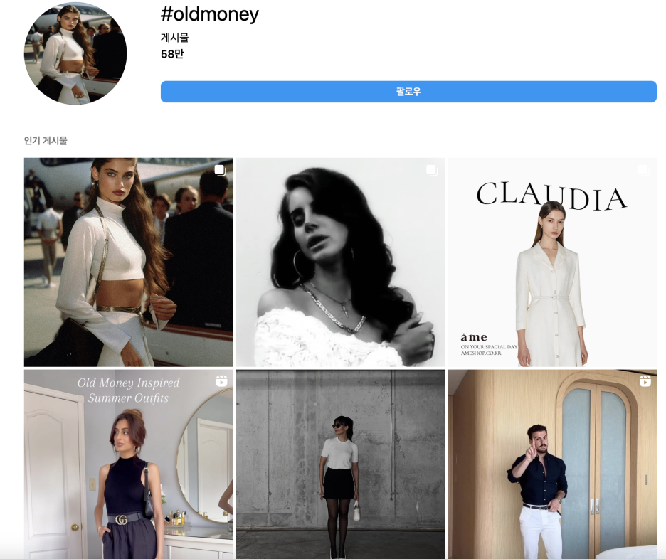 ✔️ 미국 10대를 중심으로 유행하기 시작한 올드머니 패션이 우리나라 젊은 층 사이에서도 트렌드가 되고 있습니다.