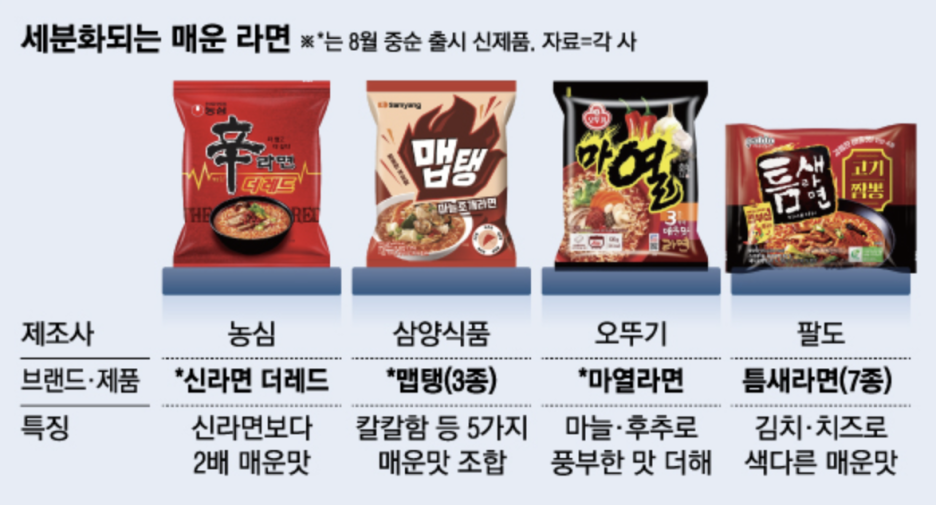 ✔️ 매운맛 자부심, 이른바 '맵부심'이 MZ세대들 사이에서 유행하며 라면업계에서는 매운맛 라면 경쟁이 불붙었습니다.