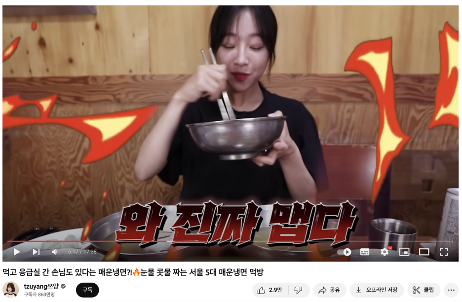 하지만 '선 넘는 맵찔이' 이전에도 먹방 유튜버들 사이에서 매운맛 음식에 도전하는 챌린지들은 꾸준히 인기를 끌어왔습니다. 이들은 매운 라면이 출시될 때마다 '도전'이라는 키워드로 땀을 흘리며 먹는 모습을 방송했죠. 이런 챌린지들은 유튜브 크리에이터들을 시작으로 젊은 층에게도 퍼져 '이렇게 매워도 먹을 수 있을까?' 하며 호기심을 자극하고 도전해보게 합니다.
