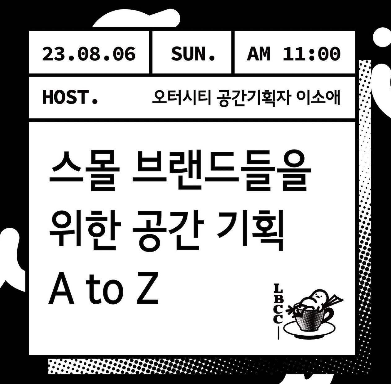 LBCC는 매주 일요일 오전에만 진행되며 커뮤니케이션을 중점인 모임이에요. 매주 한 가지 주제가 정해지고 호스트가 대화를 이끌어가는 형식으로 진행됩니다. 업무 스킬 업부터 내면을 강하게 단련하는 모임까지 토픽의 범위가 굉장히 넓은 전문성 있는 모임이에요.
