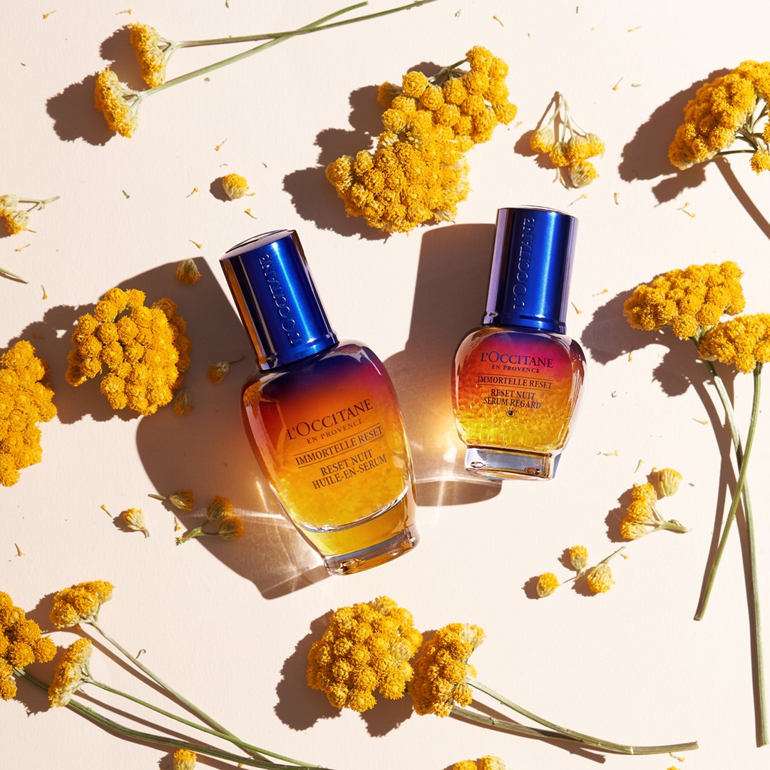 시들지 않는 꽃에 대해서 들어보셨나요? 이모르뗄은 꺾인 후에도 오랜 시간 시들지 않아 영원의 꽃, 불멸의 꽃이라는 별명을 갖고 있는데요. 록시땅은 이 꽃에 주목해, 지중해 연안 코르시카섬에서 자란 품종이 주름 개선에 효과를 지닌다는 것을 알아냈어요. 그래서 이모르뗄처럼 시간이 지나도 변치 않을 피부를 만들어줄 제품을 탄생시키게 돼요.
