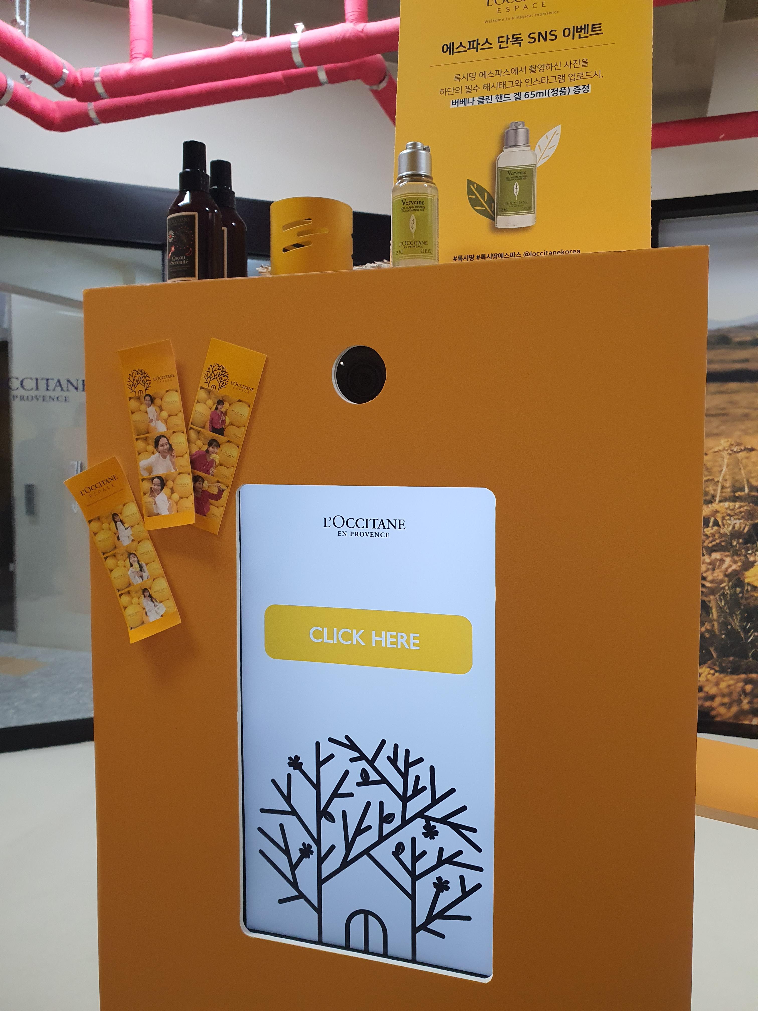 다음으로 포토존인데요. 이모르뗄 캡슐 앞에 앉아있으면 직원분께서 사진을 찍어주시고, 이후 포토부스에서 출력된 사진을 받아볼 수 있었어요.