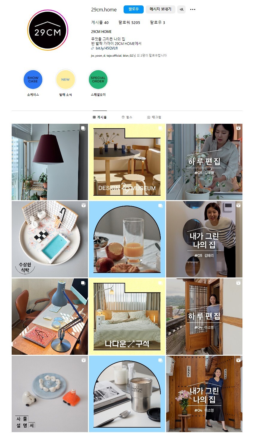 ✔️ 29CM는 29CM HOME이라는 인스타그램 계정을 별도로 오픈하며 리빙 카테고리 확대를 알렸어요.