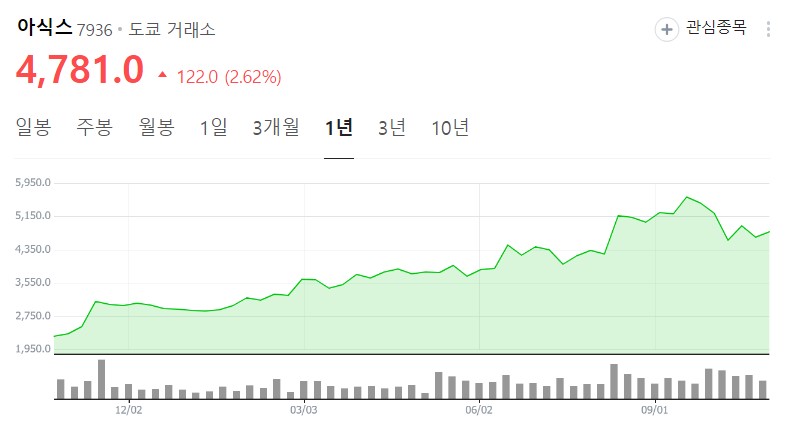 아식스의 지난 1분기 매출은 전년 동기 대비 44.6%나 증가한 1523억 엔을 기록하며, 시장 예상치를 넘어선 사상 최고 실적을 냈습니다. 주가 역시 연초 대비 100% 이상 성장하는 놀라운 흐름을 보여주고 있고요. 경기 침체로 많은 브랜드가 어려워진 시점에서 이런 실적을 낸 것은, 아식스라는 브랜드가 소비자들에게 잘 셀링 되고 있다는 것을 보여줍니다. 급변하는 패션시장에서 아식스의 인기가 계속될 수 있을지 궁금해집니다.