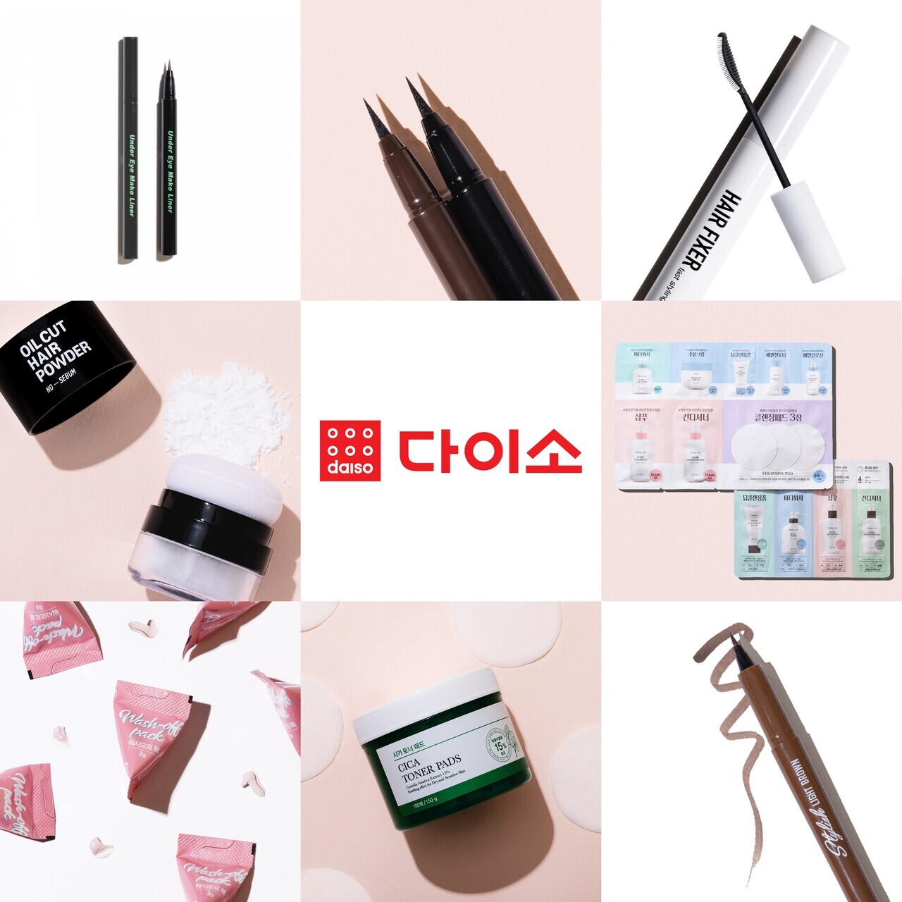 다이소 화장품의 가격은 1000원부터 시작해 비싸도 5000원을 넘지 않고, 균일가를 고수하고 있습니다. 이렇게 저렴한 가격에 비해 품질이 좋다는 소문이 자자한데요. 한국콜마, 코스맥스 등 국내 최고 화장품 전문 제조사들이 대부분의 제품을 제작했기 때문이에요. 또 취급 브랜드와 제품 수도 점점 확대되어 고객의 선택의 폭을 늘렸어요. 어느새 다이소에서 만날 수 있는 화장품들은 기초 화장품 13개 브랜드, 색조 화장품 4개 브랜드, 남성 화장품 1개 브랜드 등으로 총 19개나 돼요. 다이소 매장에 갈 때마다 화장품 코너가 점점 확대되는 것을 알 수 있습니다.