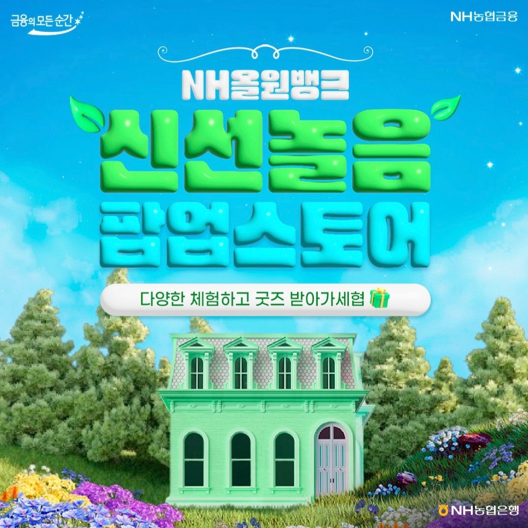 특히 이번 팝업은 농협은행의 대표 어플 'NH 올원뱅크'의 1000만 고객 기념 팝업이기도 해요. 이번 팝업과 NH 올원뱅크를 통해 디지털 금융의 '신선한' 즐거움을 선사한다고 하는데요. 과연 어떤 즐거움이 있을지 바로 한 번 확인해 볼게요.