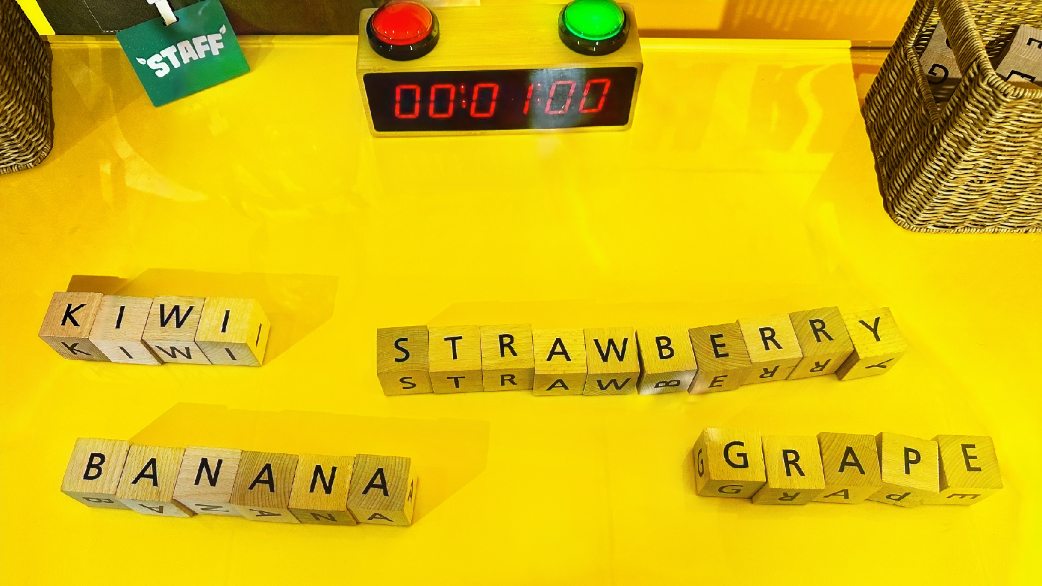 두 번째로 스탬프를 받을 수 있는 곳은 '신선한 공구생활'이었어요. NH 올원뱅크 앱을 통해서 다양한 농산물들을 공구할 수 있고요. 이곳의 스탬프 미션은 바구니에 담긴 단어 퍼즐을 푸는 거였어요. 뒤 쪽 바구니에 담긴 과일이 힌트였어요.