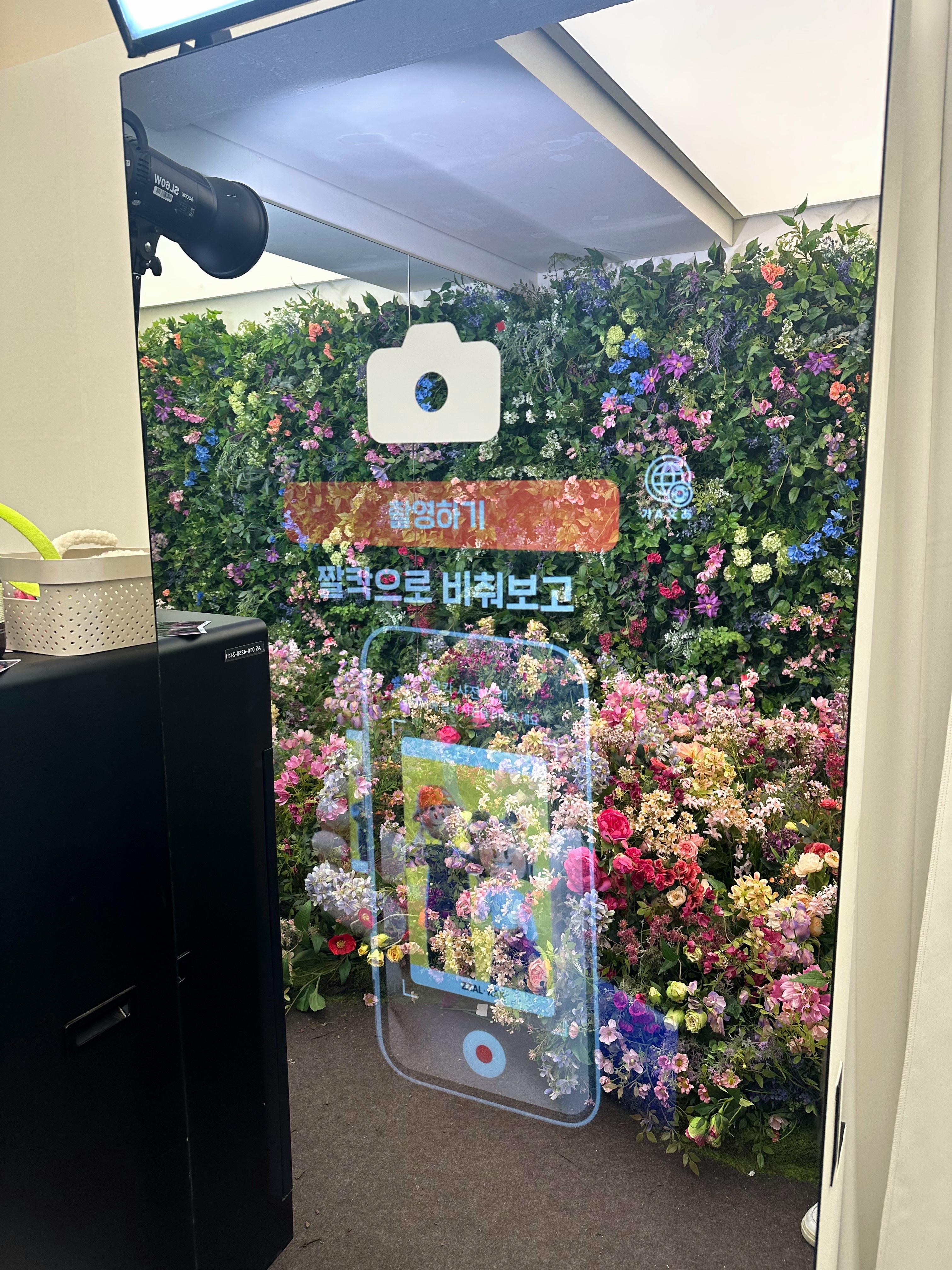 마지막 스탬프를 받는 곳은 '신선한 꽃밭생활'로 꽃밭으로 꾸며진 포토존에서 사진을 찍으면 스탬프를 받을 수 있었어요. AR 포토카드여서 어플로 보면 사진이 움직이더라고요. 촬영을 마치고 나니 직원분께서 NH 올원뱅크 앱에서 전문 플로리스트가 만든 꽃다발과 화환 역시 주문할 수 있다고 설명해 주셨어요.