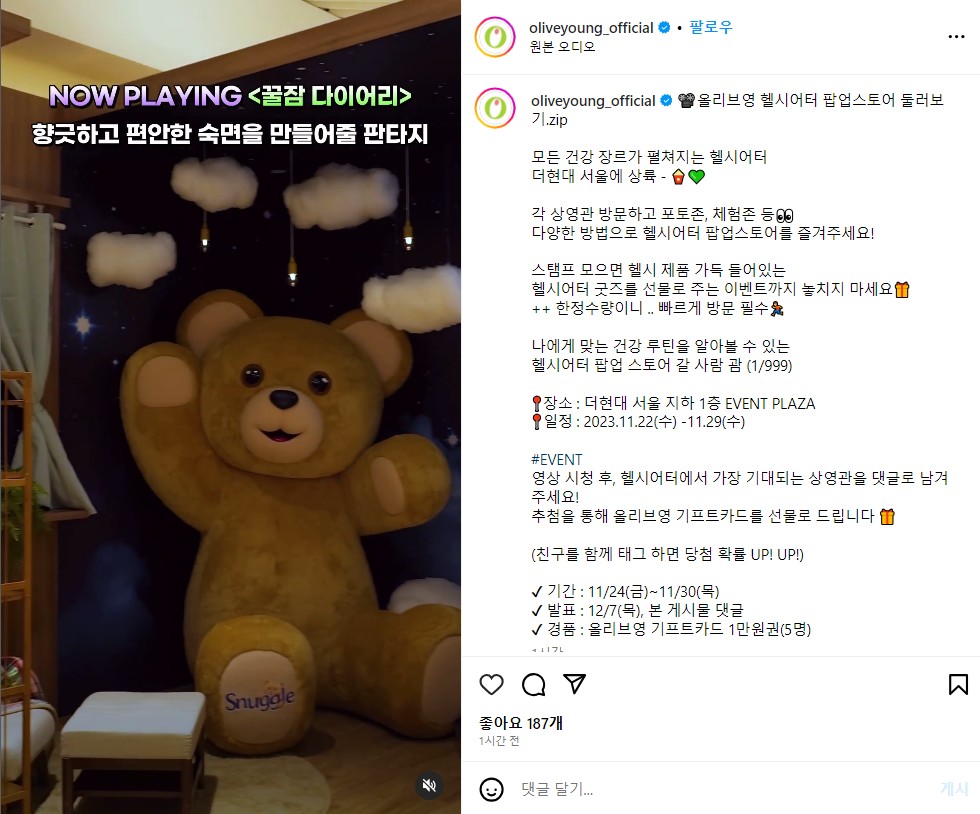 ✔️ CJ올리브영이 11월 10일~30일까지 온오프라인을 통해 통해 '헬시어터(Healtheatre)' 캠페인을 진행해요.