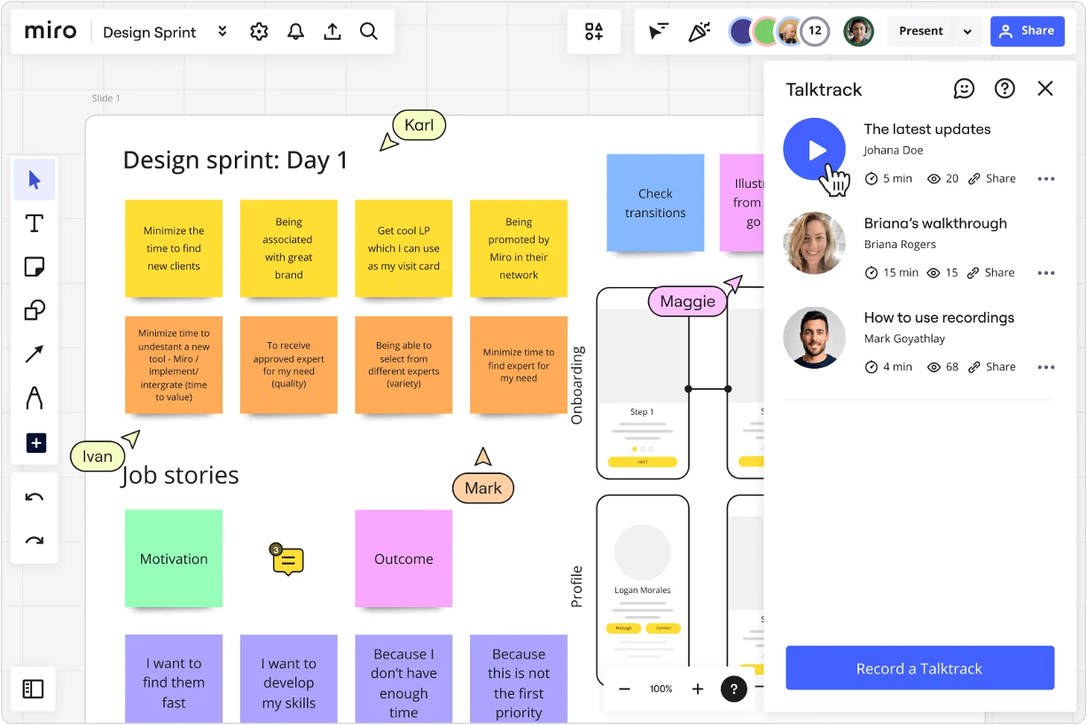 미로는 아이데이션, 구조화에 특화된 비주얼 기반의 협업 툴인데요. 브레인스토밍, 매핑처럼 워크플로우를 정리하고, 다양한 아이디어를 유기적으로 연결해서 직관적으로 보여주는 데에 최적화되어 있어요. 또, 미로는 모든 변경 사항이 자동으로 저장되고, 현재 내가 어떤 작업을 하고 있는지 실시간으로 표시되어 모든 참가자들이 확인할 수 있어 협업 시 유용해요.