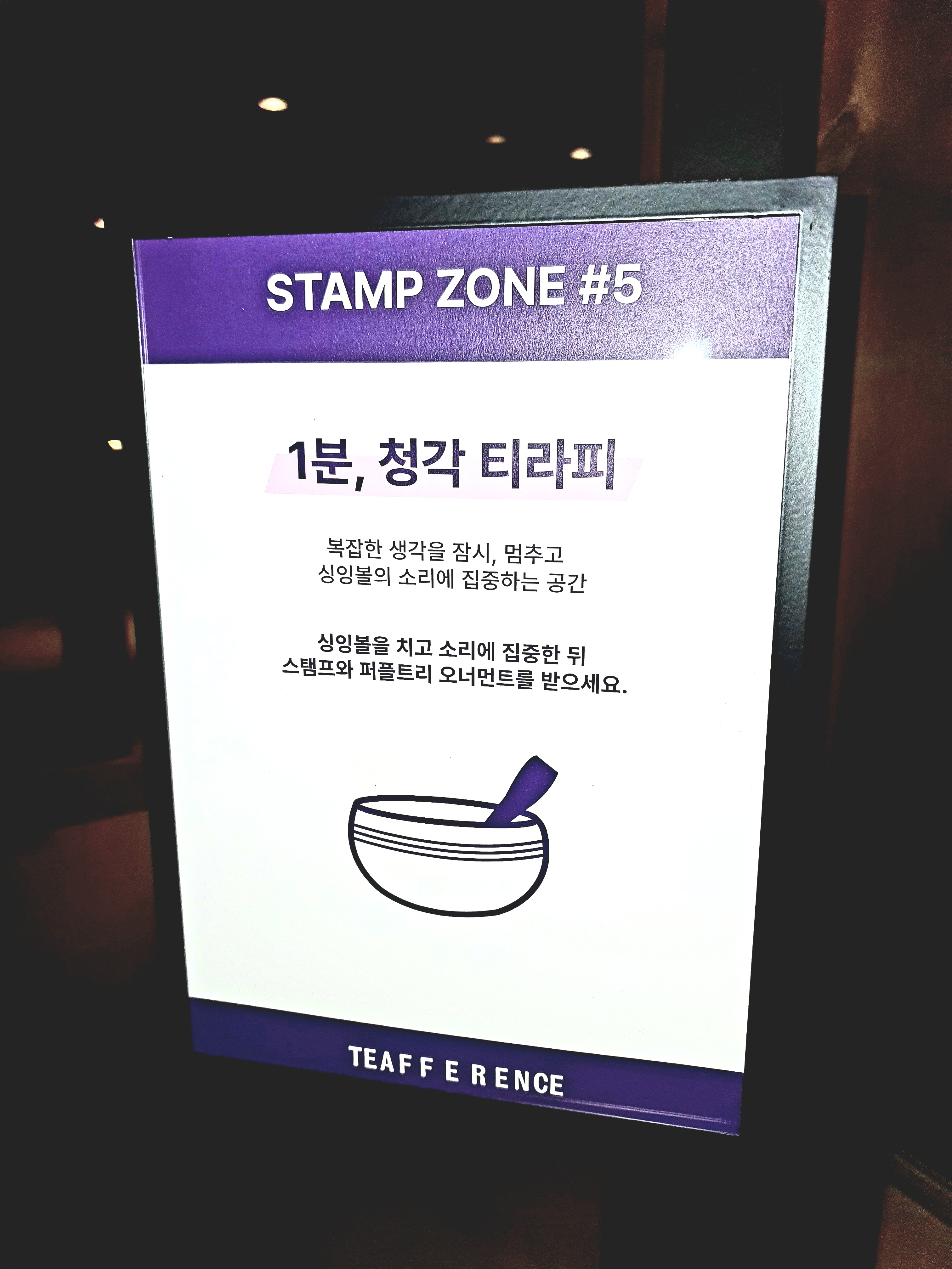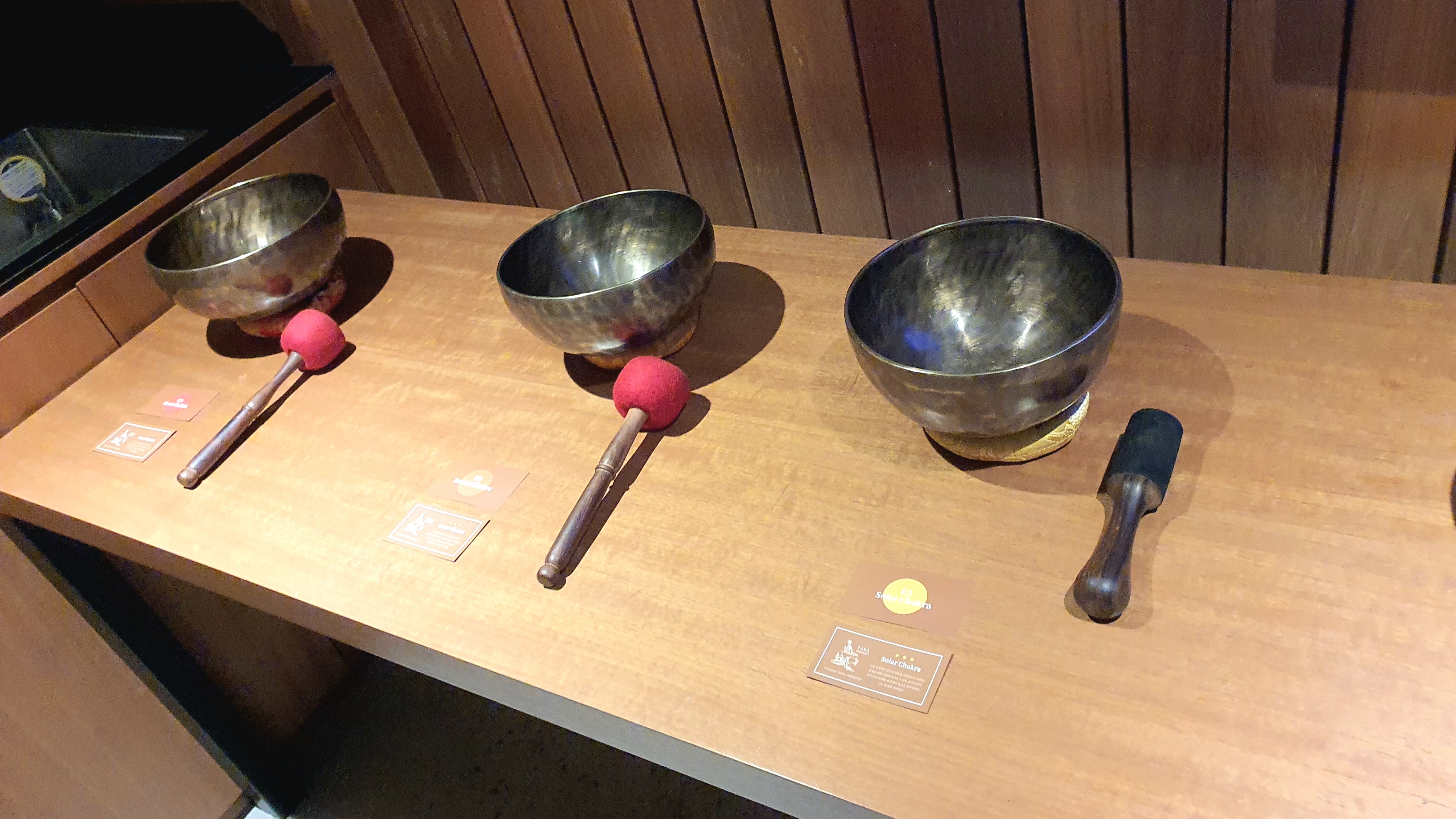 마지막 청각 티라피 존에서는 싱잉볼을 체험해 볼 수 있었어요. 싱잉볼 자체가 생소하기도 하고, 신기하기도 해서 참 이색적이더라고요. 눈을 감고, 징과 종 그 사이의 소리를 듣고 있자니 나름 힐링이 되더라고요.