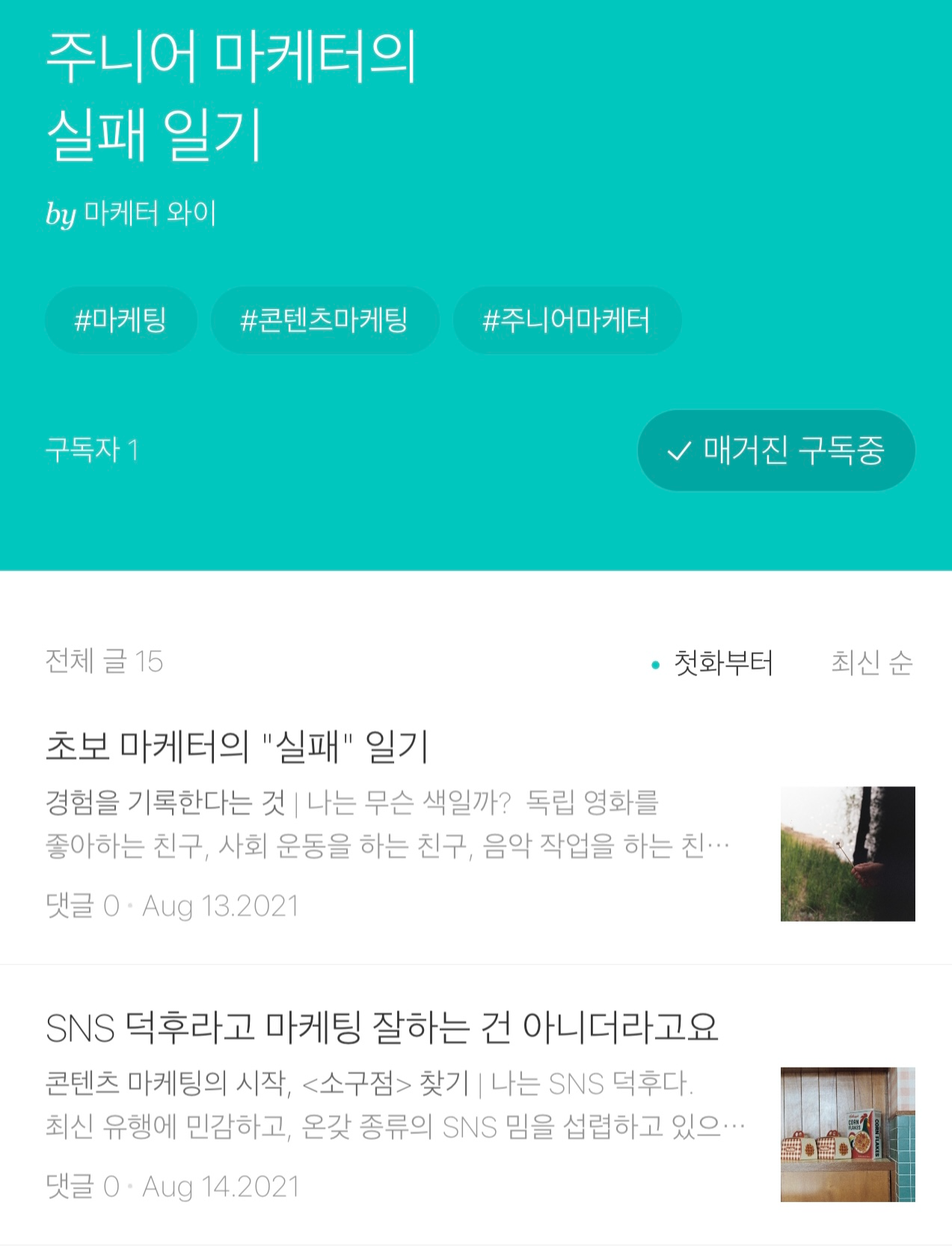 퍼스널브랜딩은 경력 없는 마케터가 시도할 수 있는 가장 기본적인 방법이에요. 그 과정은 이후 또다른 프로젝트에 참여하거나, 해당 분야에서 전문성을 인정받는 기회가 될 수도 있고요. 교육 업계에서 사수 없이 일하며 고군분투하는 주니어마케터로서의 경험을 브런치 매거진으로 연재하던 A는 마케팅 글을 기고하는 작가가 되었습니다. 또, F&B 트렌드를 꾸준하게 인스타그램에 업로드하던 B는 평소 좋아하던 외식 브랜드의 마케터가 되었고요. 오늘 소개한 퍼스널브랜딩 과정은 막 마케팅을 시작했거나, 경력이 없는 마케터들에게 다음 단계로 나아갈 초석이 되어줄 거예요.