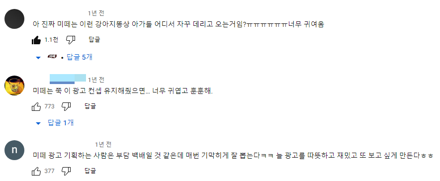 ‘T’성격들은 다소 현실적이고 차가워 보일 때가 있는데, 핫초코 미떼로 제대로 표현하지 못한 따뜻한 말을 전한다는 컨셉을 재치있게 풀어낸 광고였습니다. 사람들의 반응 역시 “미떼 광고가 나온 걸 보니 겨울이 왔나봐요”, “미떼 광고는 항상 따뜻하고 힐링된다” 등 긍정적이었죠. 추운 겨울, 달콤하고 따뜻하게 몸을 녹이는 ‘핫초코’ 브랜드 이미지에 맞는 광고들을 매년 선보이고 있습니다.