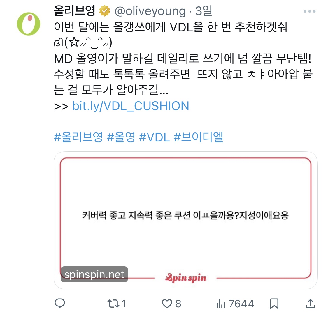 헬스&뷰티 스토어 올리브영은 엑스를 통해 브랜드 팬들과 소통을 활발하게 전개하는 대표적인 브랜드예요. 엑스에서는 다른 계정을 태그해 게시글을 작성하는 것이 전혀 어색하지 않아서, 소비자들이 브랜드 계정을 태그하는 모습도 쉽게 볼 수 있는데요. 올리브영은 태그된 게시물을 인용해 제품을 추천하는 등 ‘소비자’를 엑스의 SNS 활동에 자주 참여시키고요. 이는 곧 브랜드 팬덤 형성으로까지 이어졌는데요. 올리브영은 엑스에서 그들의 충성 고객을 ‘올갱이’라고 부릅니다. 프로모션 및 이벤트 홍보도 내 친구 ‘올갱이’에게 꿀템을 알려주는 형식으로 친근하게 공유해요. 그뿐만 아니라 엑스의 주요 특징인 ‘확산력’을 이용해 팔로우 및 재게시 이벤트도 빈번하게 진행하면서 계정을 발전시키고 있어요.