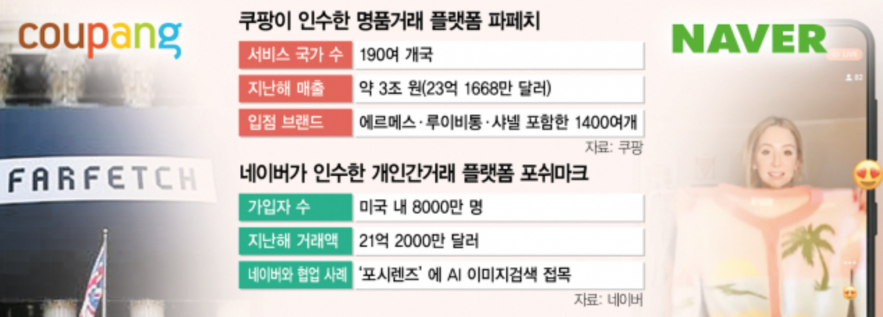 쿠팡 외에 또 다른 이커머스 강자인 네이버 역시 해외 역직구 시장에 적극적입니다. 네이버는 해외에서 이미 어느 정도의 커뮤니티를 갖추고 있는 플랫폼 기업들을 인수하고 있어요. 특히 미국의 당근마켓으로 불리는 북미 최대 중고패션 플랫폼 ‘포쉬마크’를 인수하면서 글로벌 시장으로 확장하겠다는 의지를 내비쳤죠. 또, 유럽 시장에서는 작년에 프랑스 베스티에르 콜렉티브, 스페인 왈라팝에 투자하기도 했어요.
