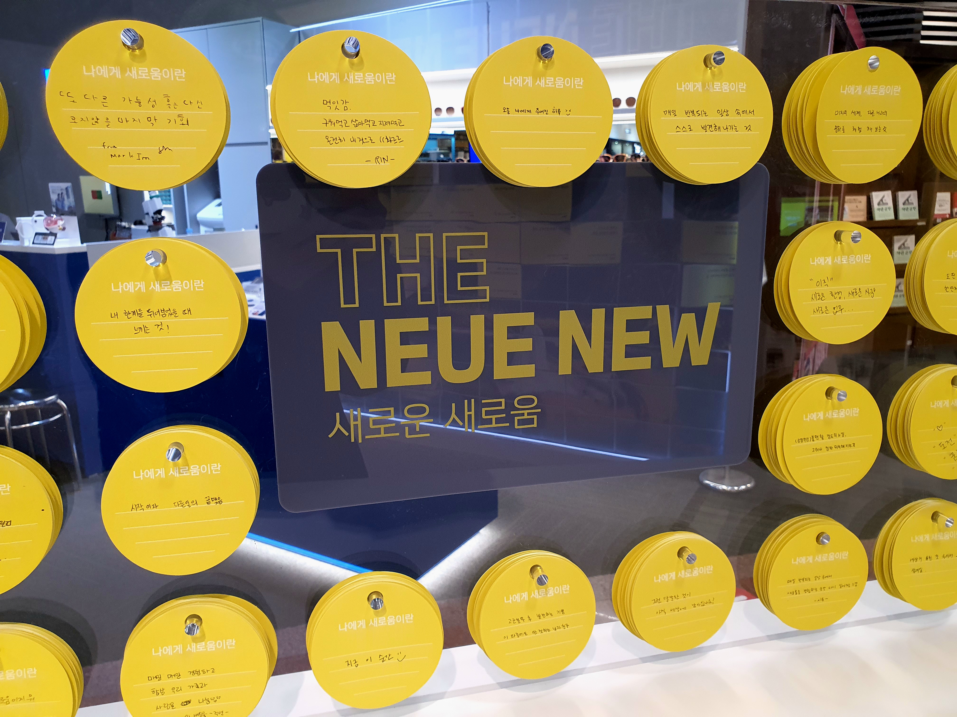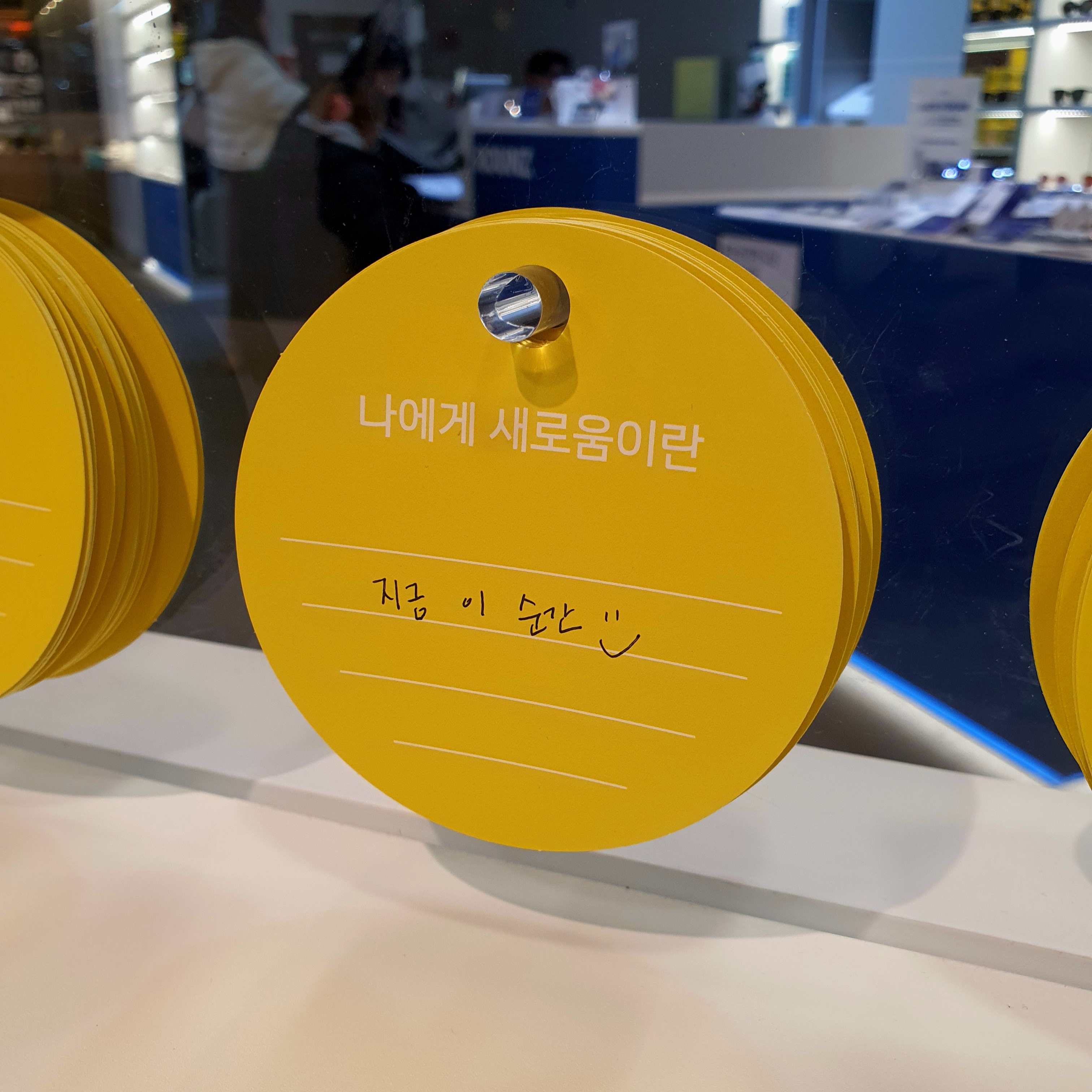옆에는 자신이 생각하는 새로움에 대해서 코멘트를 남길 수 있는 공간도 있었는데요. 많은 사람들이 새로움이란 무엇이라고 생각하는지 남기고 갔더라고요.