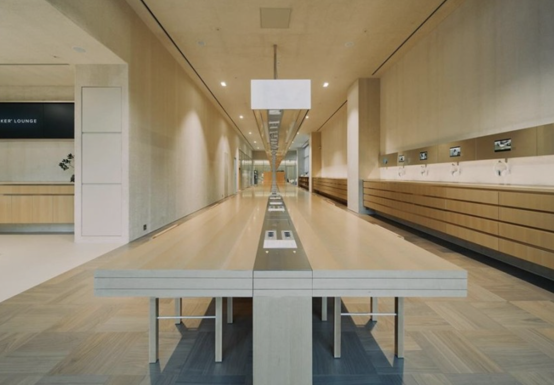 데스커 라운지에 들어가자마자 볼 수 있는 큰 일자형 테이블은 칸막이 없이 서로가 서로를 볼 수 있는 구조입니다. 일하는 사람들이 각자 그리고 동시에 함께 일할 수 있도록 유도한 건데요. 함께 일하면 더 큰 가치가 창출되고, 더 새로운 것들이 탄생한다는 점에서 사람과 사람 간의 연결을 강조한 이 공간의 정체성을 보여주는 것이기도 합니다.