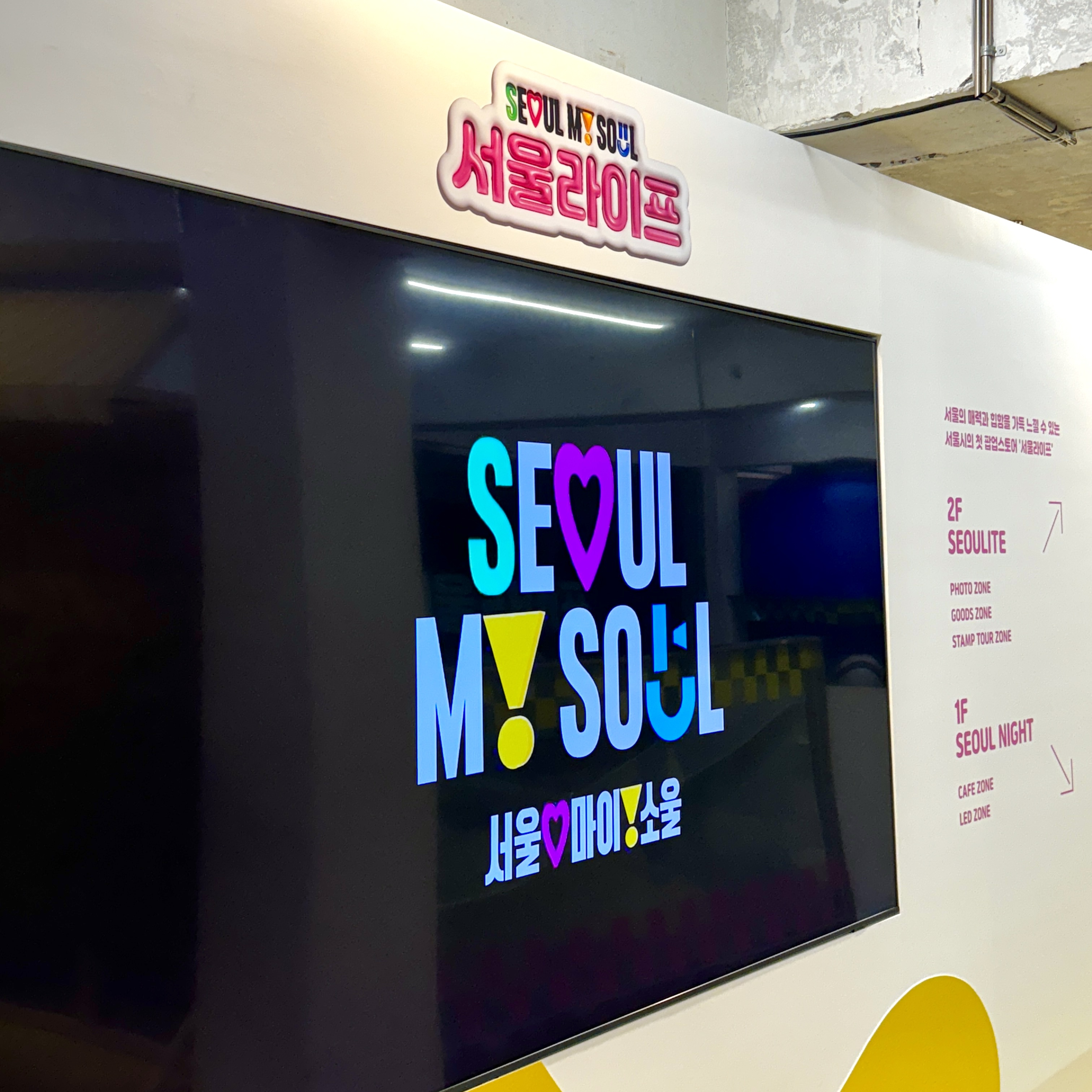 이 메시지는 2층에 마련된 각종 체험존에서도 찾아볼 수 있는데요. 방문객이 스탬프 미션을 진행하면서 서울시의 공공정책과 음식, 여행 콘텐츠 등을 자연스럽게 알아가도록 했어요. 뿐만 아니라 트렌디한 서울시 공식 굿즈를 판매해, 서울시 브랜드의 팬을 만들고 결속시키는 데 도움을 줬고요. 1층에 설치된 SEOUL MY SOUL 포토존을 통해 사람들이 서울시의 새 슬로건을 좀 더 잘 인지할 수 있도록 했어요. 제품이나 서비스가 있는 브랜드가 아니라, 오직 공공기관만 할 수 있는 팝업스토어였어요.
