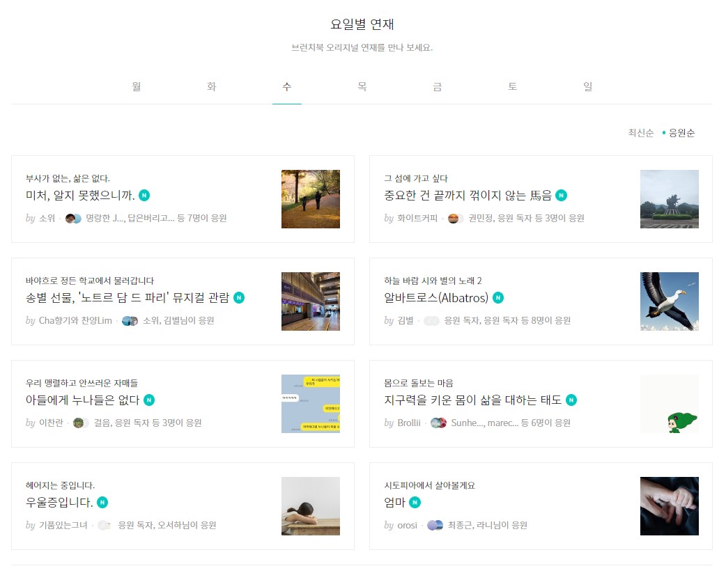 무엇보다도 이번 수익화 서비스로 창작자들이 안정적인 수익을 확보함으로써, 보다 질 높은 콘텐츠를 생산하고 창작 활동에 더 많은 시간과 노력을 투자할 수 있게 될 예정이에요. 오늘날 소비자들은 단순히 콘텐츠를 소비하는 것을 넘어, 창작 과정에 참여하고 창작자를 지원하는 방식에 대해 긍정적인 태도를 보이고 있어요. '응원하기'를 통해 앞으로 브런치스토리의 콘텐츠가 더욱 풍성해질 것 같아요.