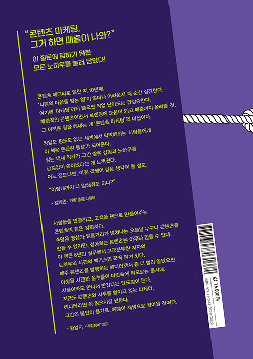 책은 ‘그래서 이 콘텐츠가 브랜드에 도움이 될까?’라는 대전제를 담고 있어요. 기업에서 콘텐츠를 하는 마케터, 에디터는 콘텐츠가 비즈니스 목적과 어떻게 관련이 있는지 증명해야 하는 순간을 마주하는데요. 그에 대한 힌트를 책을 통해 얻을 수 있어요.