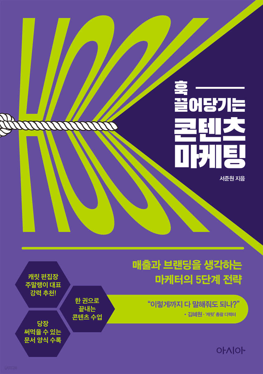 <어른의 문장력>이 좋은 문장이란 무엇인지 알려준다면, <훅 끌어당기는 콘텐츠 마케팅>은 문장이 모여 만드는 ‘콘텐츠’에 대해 이야기해요. 에디터처럼 만들고 마케터처럼 파는 사람 ‘마디터’, 서준원 작가는 마케팅 에디팅, 브랜드 콘텐츠 기획 업무를 하며 얻은 인사이트를 책으로 전달합니다.