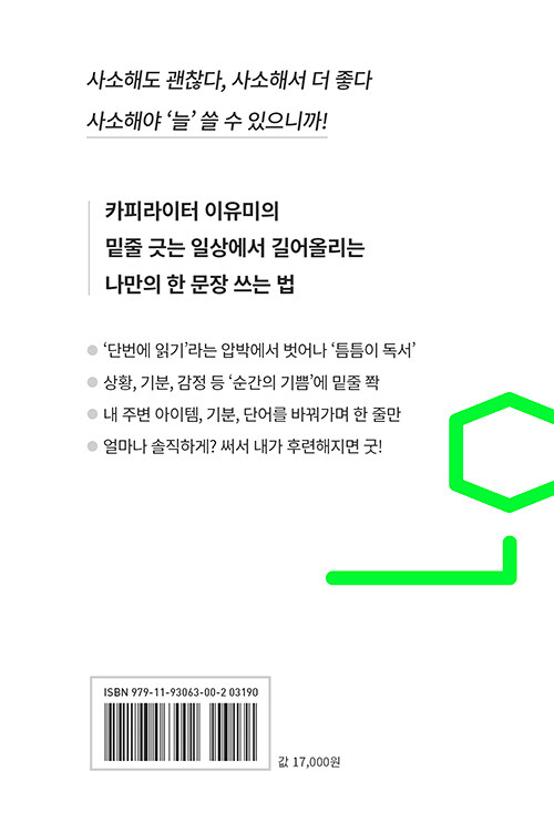 이유미 작가에게 독서가 그렇듯, 이 책을 읽고 나에게 영감을 주는 대상과 나만의 문장 수집법을 찾길 바랄게요.