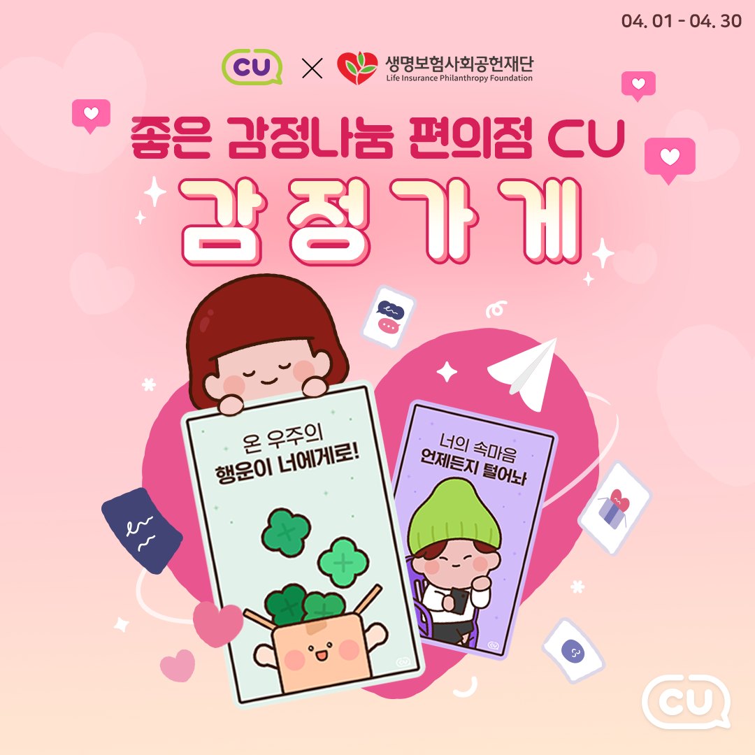 주변에 CU에서 감정카드를 뽑아 위로가 필요한 친구들이나 가족들에게 전달해줘 보는 건 어떨까요?