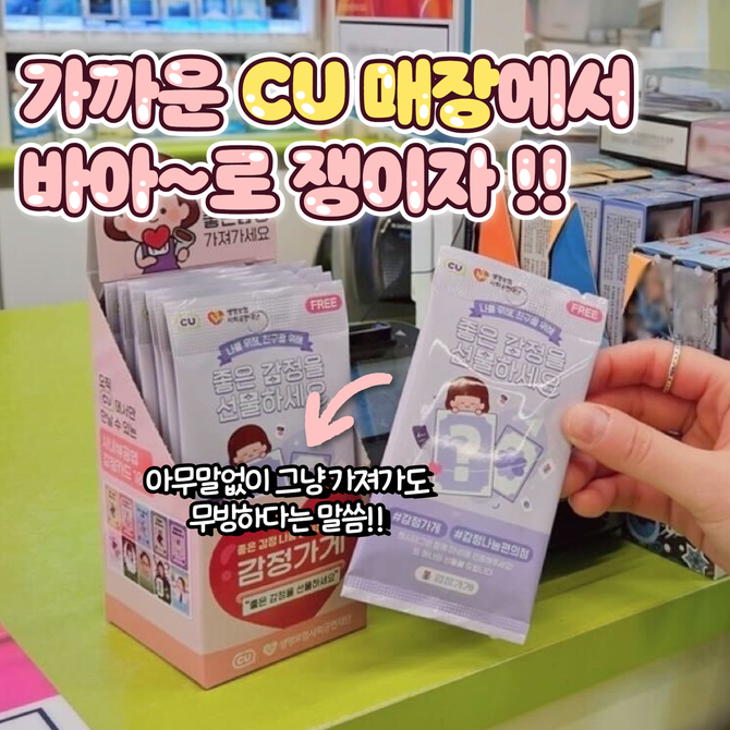 ✔️ 전국에 있는 CU 점포에서 무료로 감정 카드를 받을 수 있는 캠페인이에요.