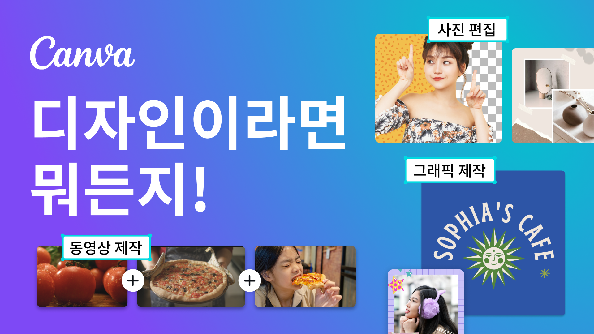 캔바는 사용자 친화적인 디자인 툴로 SNS썸네일, 포스터, PPT 등을 손쉽게 작업할 수 있어요. 간단한 드래그 앤 드롭 방식으로 디자인할 수 있으며, 다양한 템플릿과 이미지, 폰트 등을 제공해요.