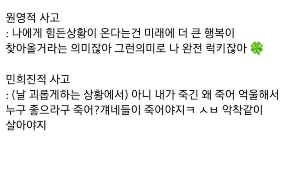 이전에 '중꺾마, 오히려 좋아'같은 밈들이 사용되면서 사회 전반에 긍정적인 영향을 끼쳤다면, 이제는 원영적 사고를 활용해 긍정의 힘을 키워보는 건 어떨까요?