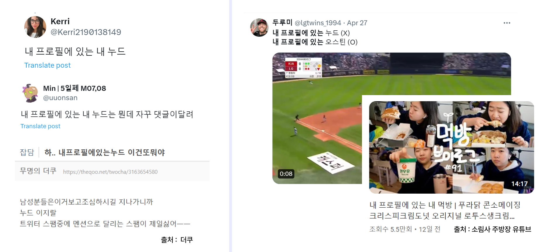 최근 X(트위터) 유저들이 공통으로 마주하게 된 스팸 게시물이 있어요. 바로, 내 프로필에 있는 내 누드인데요. 불법적인 음란계정이 마구잡이로 스팸 멘션을 달며 유저들은 불편함을 겪고 있었답니다. 그러나 이 상황이 반복되면서 사람들은 이를 밈으로 활용하기 시작했어요.