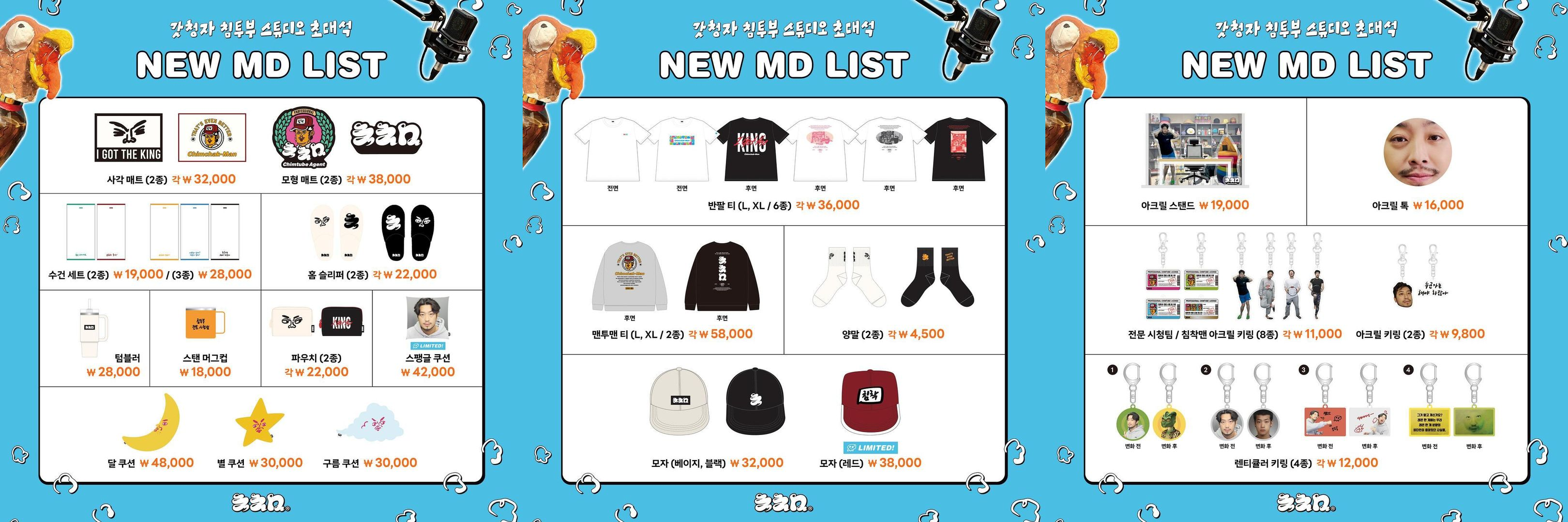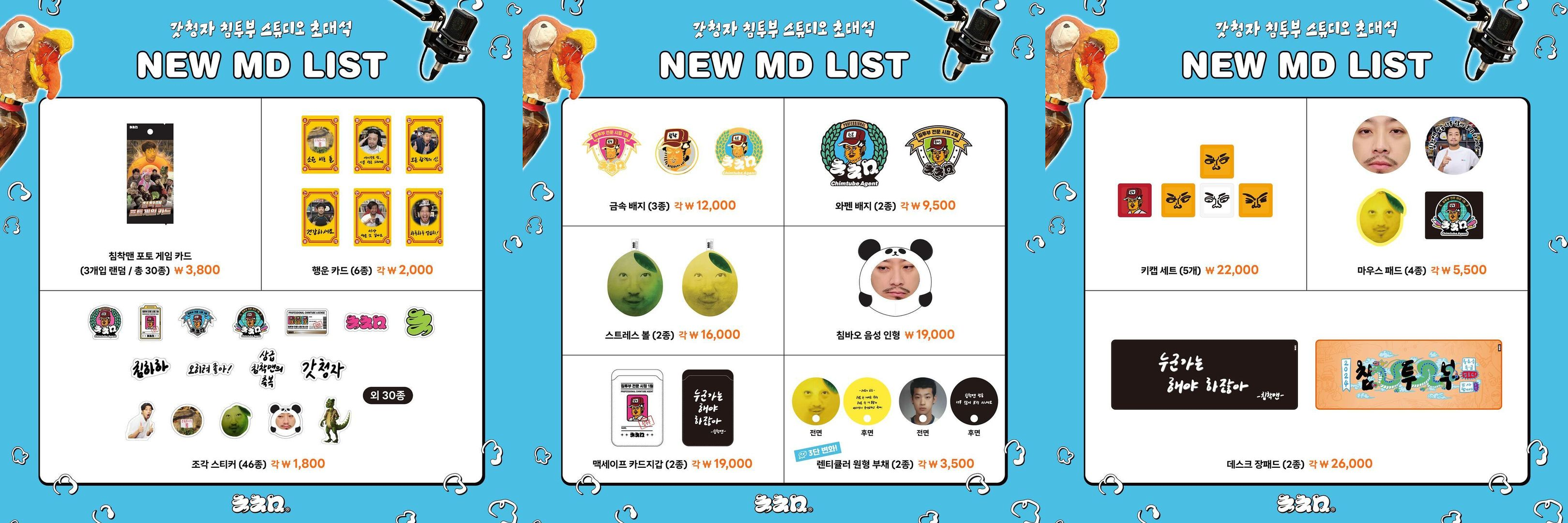 현장에서는 아래 리스트 외에도 침착맨의 동생인 '통닭천사'가 운영하는 얼렁뚱땅 상점 굿즈와 토앤토와 콜라보한 슬리퍼 굿즈까지 준비되어 있었어요.
