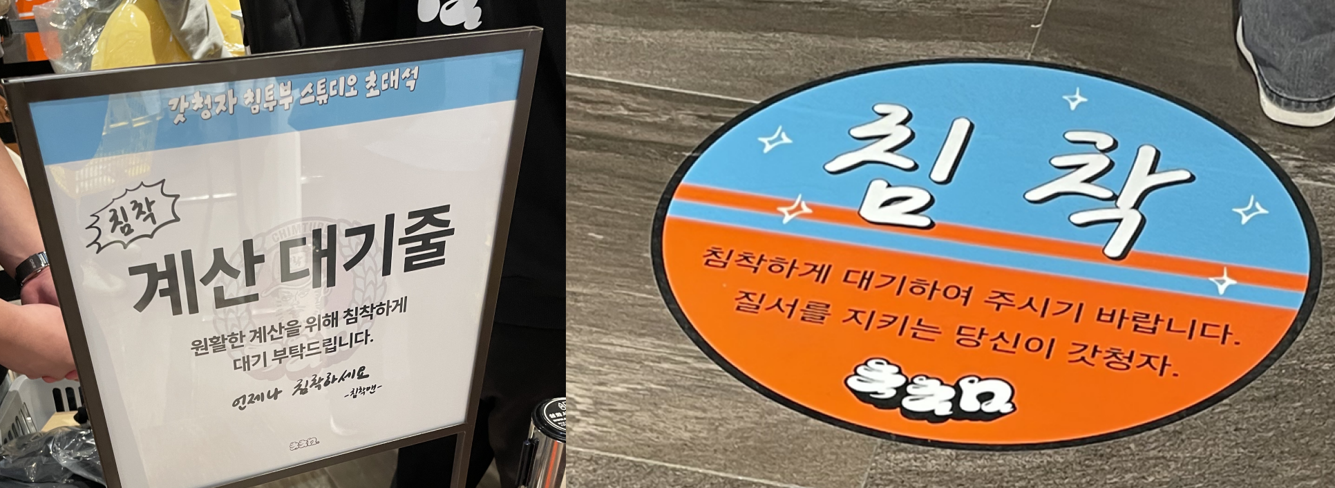 ✔️ 침착맨 팝업스토어는 안내선, 안내문, 포토부스 운영 등을 고려해 팬들의 원활한 관람을 가능하게 한 좋은 사례예요.