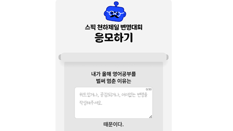 최근 스픽은 또 하나의 마케팅 캠페인을 진행하고 있어요. '제1회 스픽 천하제일 변명대회'를 개최한다고 밝힌 건데요. 이번 대회는 영어 공부를 시작했지만 금세 열정이 식어버린 경험을 가진 사람들을 대상으로 해요.