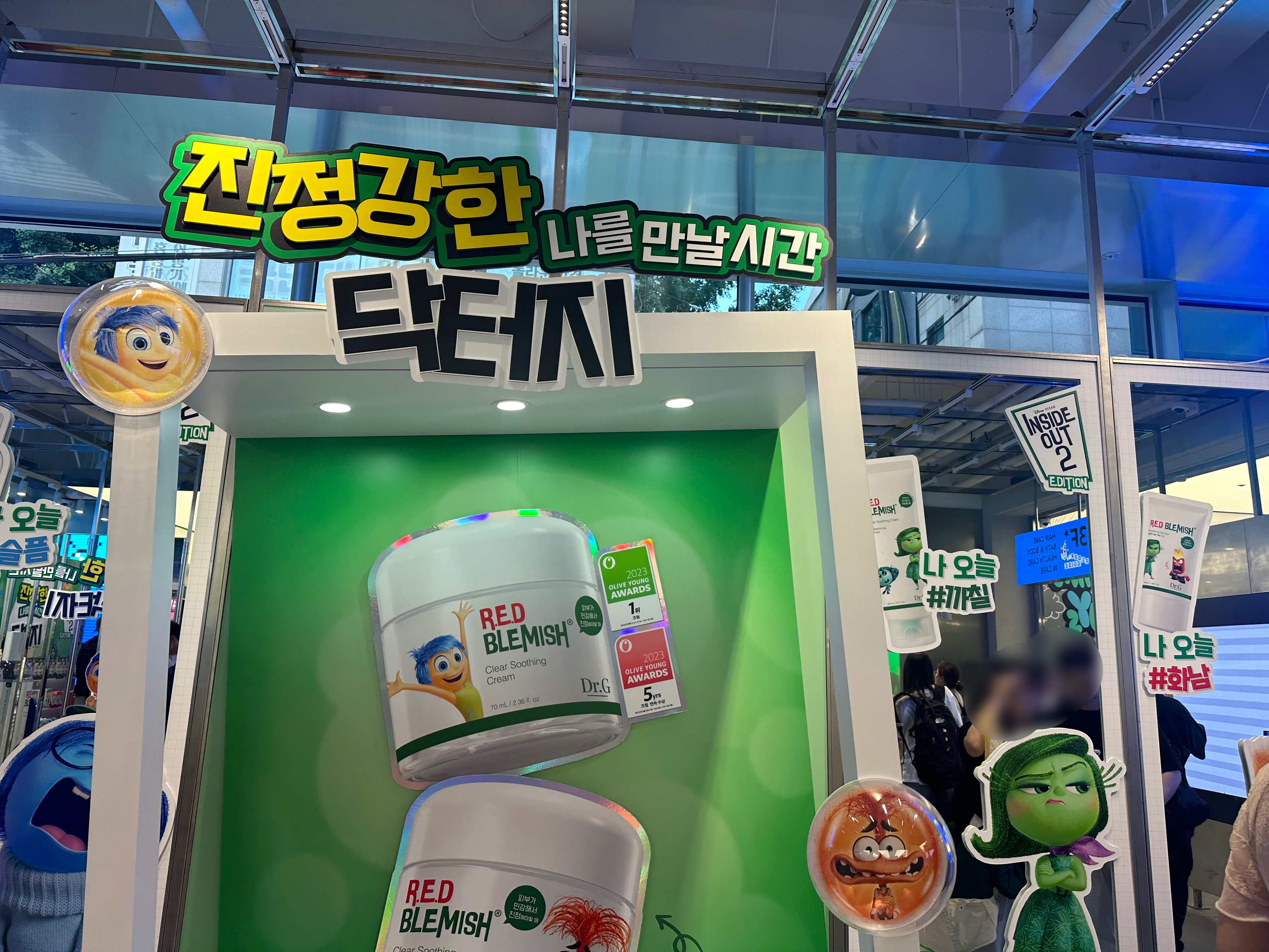 올리브영 홍대타운점은 타 매장과 다르게 오프라인 체험을 강화한 상권을 대표하는 매장이었어요. 제가 방문했을 땐 6월 개봉 예정인 인사이드 아웃 2와 Dr.G의 콜라보 팝업이 진행되고 있었는데, 무엇보다 올리브영에서 팝업을 즐길 수 있다는 점이 매력적으로 다가왔어요.