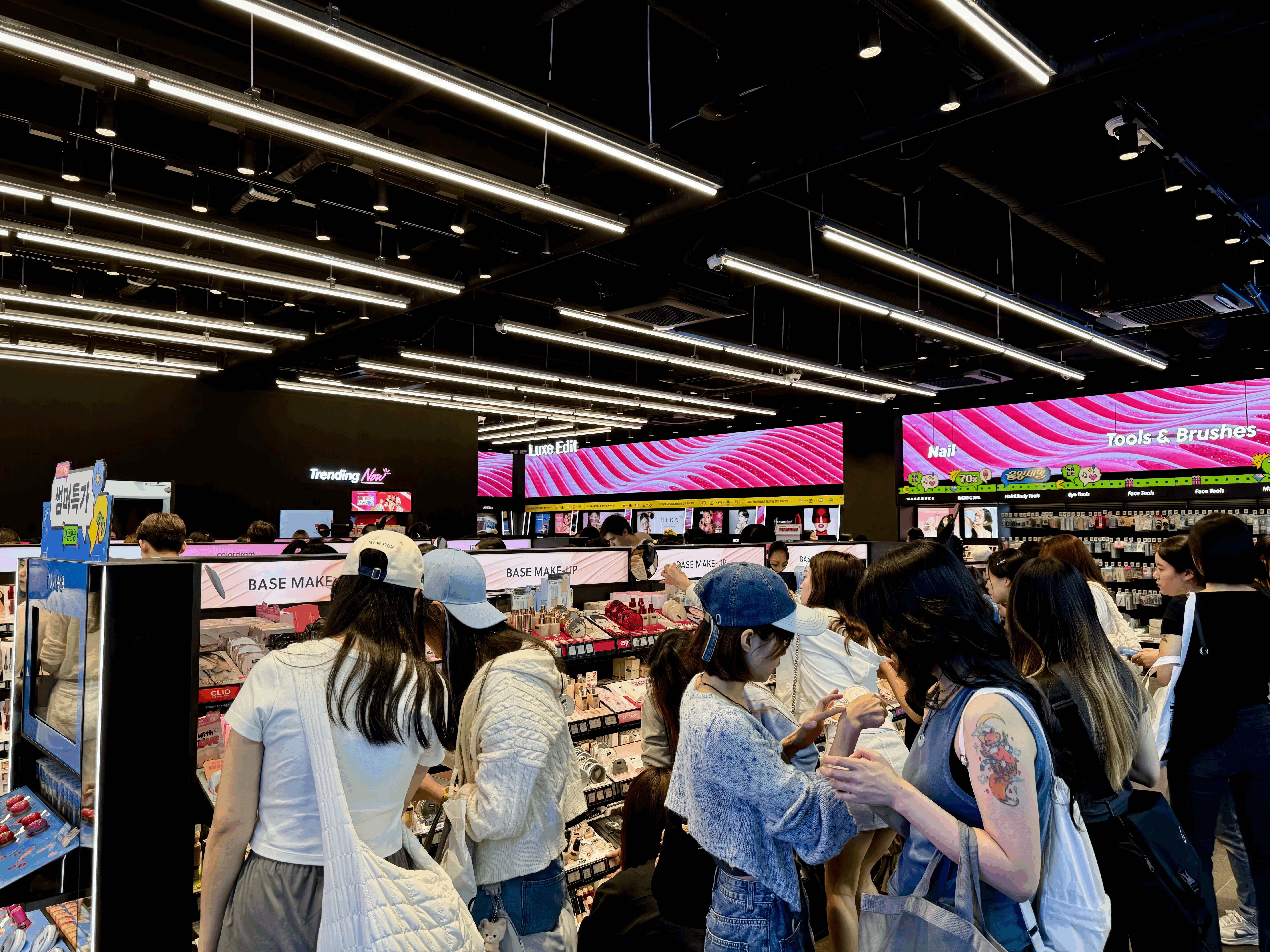 그중에서도 올리브영 홍대타운점은 대표적인 K-뷰티의 성지로, 국내외를 막론하고 다양한 외국인 손님들이 발길을 이끄는 랜드마크 역할을 톡톡히 하고 있었어요.