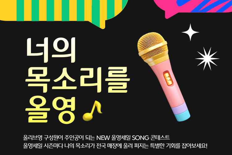 올리브영은 '올리브영 팬덤 고객'에게 즐거움을 더해주기 위해 10cm 권정열과 소란의 고영배가 작사 작곡한 '올영세일송'을 만들어 지난 3년간 올영세일 기간마다 매장에서 활용했었어요.