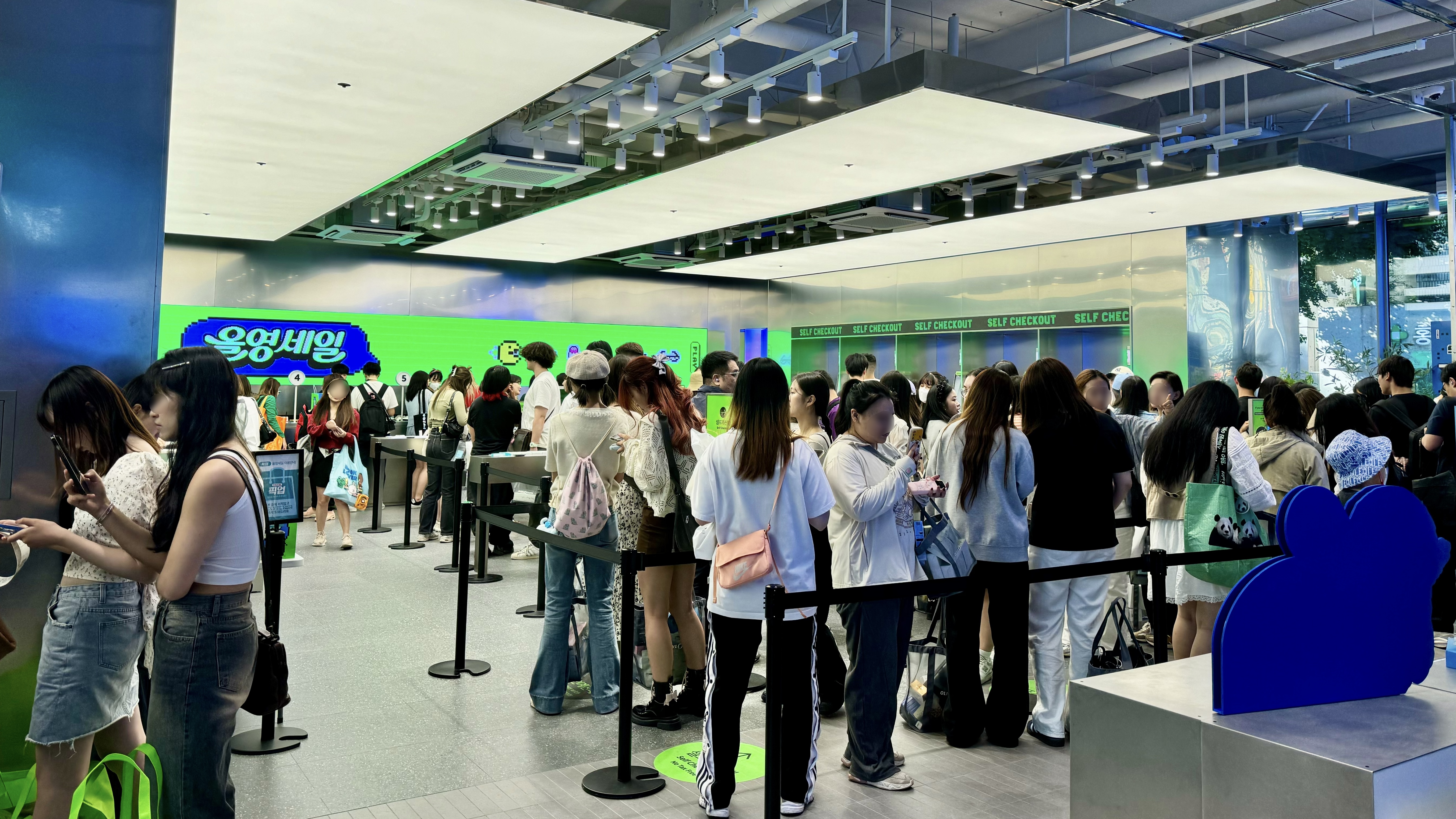 여러분 이게 전부 결제 대기줄이라면 믿으시겠어요? 사진에서 눈치채신 분들도 있겠지만, 이는 이번 '6월 올영세일'을 맞아 매장에 방문한 손님들의 결제 대기줄이에요. 올리브영의 시들지 않는 인기의 비결을 알아내기 위해 직접 올리브영 홍대타운점에 방문해 봤어요.