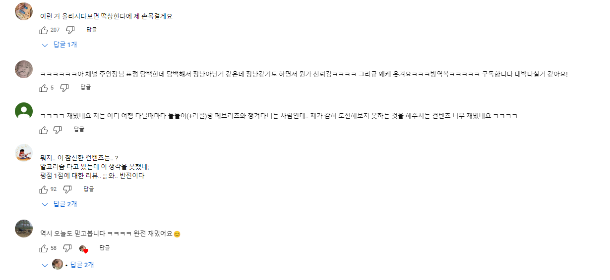 더불어, 댓글을 보면 초보 유튜버 같지 않다는 반응들을 살펴볼 수 있는데요. 시작한 지 약 3개월밖에 되지 않은 유튜버임에도 높은 퀄리티의 콘텐츠를 선보이고 있답니다.