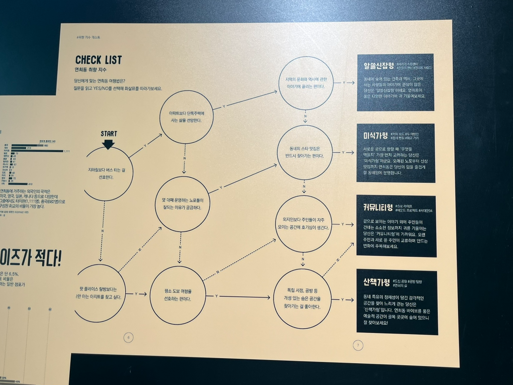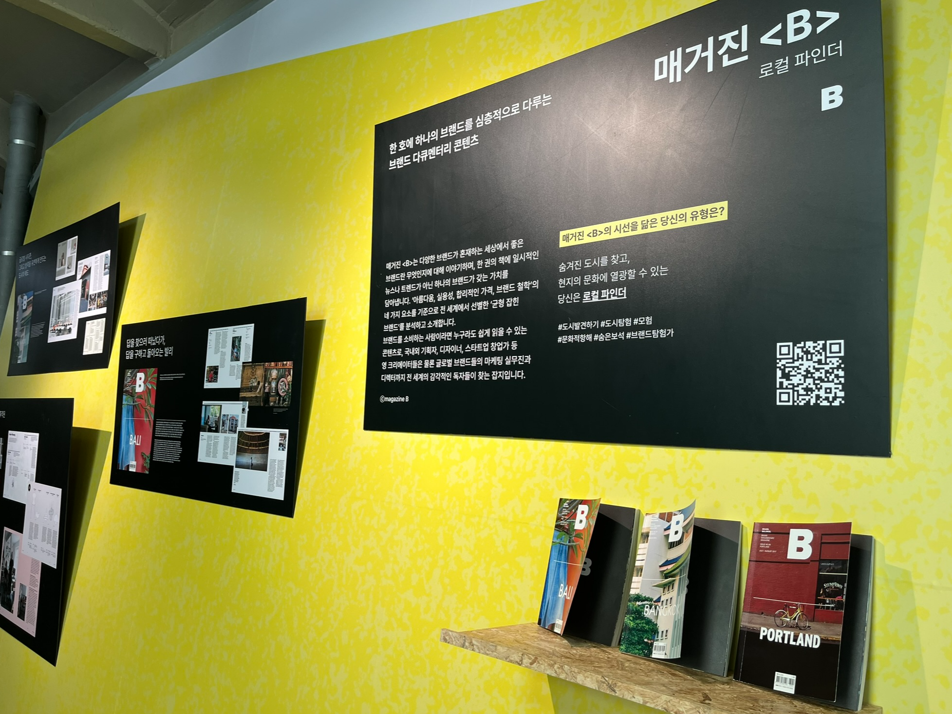 이곳에서는 기다란 복도를 따라 다양한 로컬 매거진들을 만나볼 수 있었는데요. 제주 특색에 맞게 방언을 활용한다거나, 연희동을 즐기는 나만의 방법을 테스트할 수 있는 페이지가 있다거나 하는 포인트들이 재미를 주었습니다.