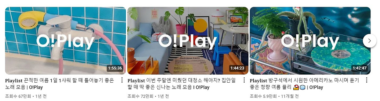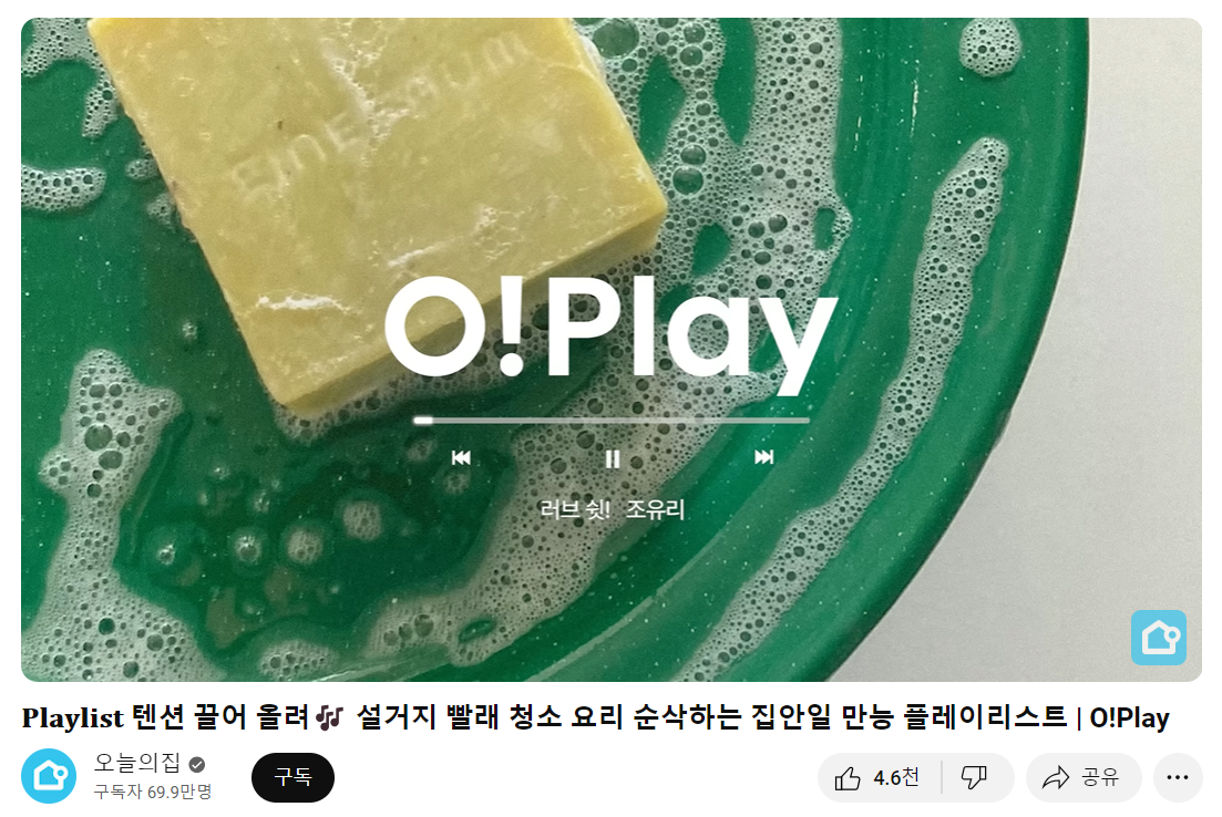 오늘의집은 인테리어와 관련된 다양한 콘텐츠를 제공하는 플랫폼으로 유명하죠. 오늘의집 역시 'O!PLAY'라는 유튜브 플레이리스트를 제공하고 있는데요. 이 플레이리스트는 다양한 인테리어 스타일에 맞춘 음악을 큐레이팅해 제공하고 있어요.