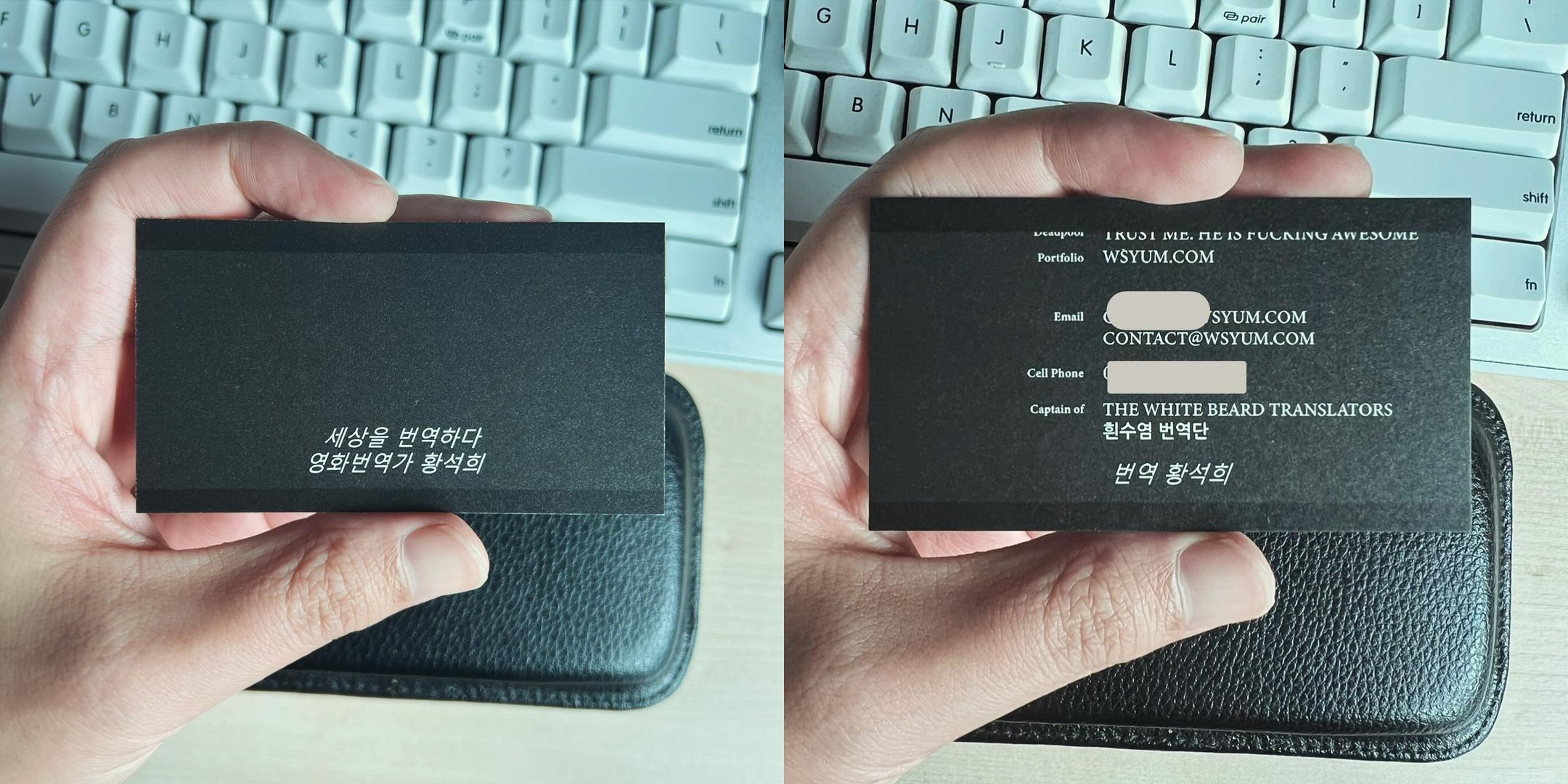영화 좋아하는 분이라면 황석희 번역가님은 모를 수 없을텐데요. 번역가님은 영화 원작의 분위기를 충실히 재현하면서도 한국 정서에 맞춘 초월번역으로 잘 알려져 있습니다. 그런데 최근 번역가님의 명함이 화제가 되었어요. 그 이유는 그의 명함 디자인이 직업 정체성을 창의적으로 담아냈기 때문입니다.
