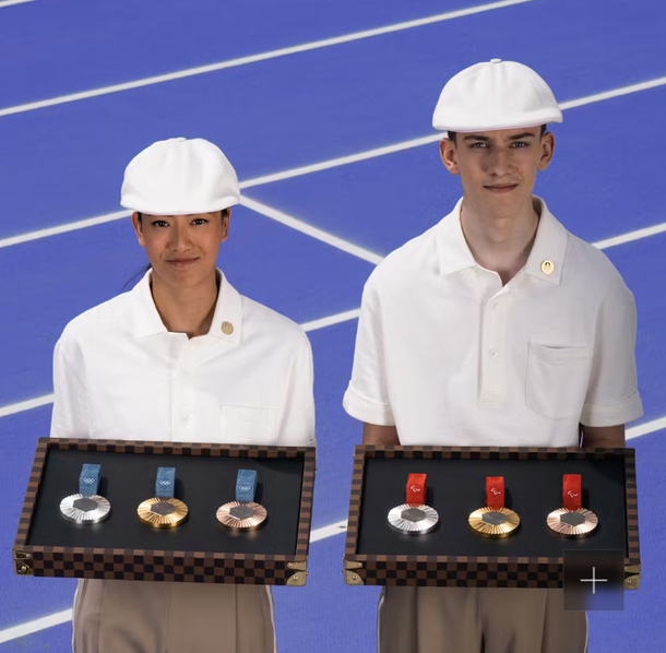 이번 파리올림픽은 세계 최대 명품 기업인 루이미통모에 헤네시(LVMH)가 2000억이 넘는 대규모 후원을 한다고 해요. 주얼리 브랜드 ‘쇼메’에서 파리올림픽 메달을 디자인하고, 루이비통은 메달을 담는 가죽 받침대를 만드는 등, 파리올림픽 곳곳의 디테일까지 패션업계가 참여했어요.